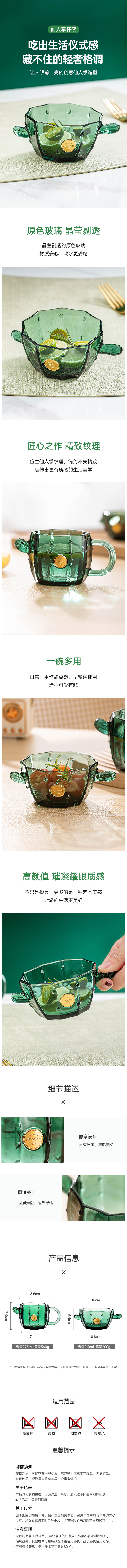 乐唯诗 仙人掌甜品碗单只装 XRZW/L1 210ml 绿色(单位:只)