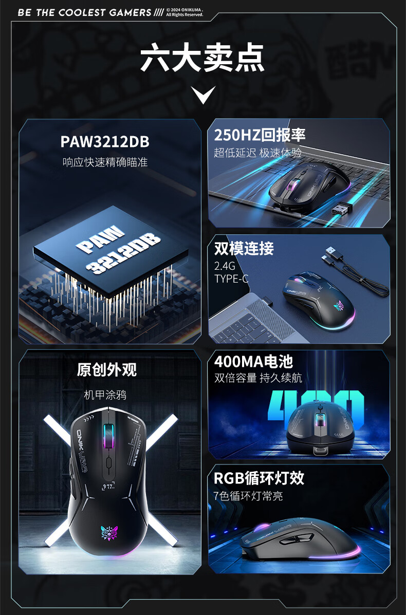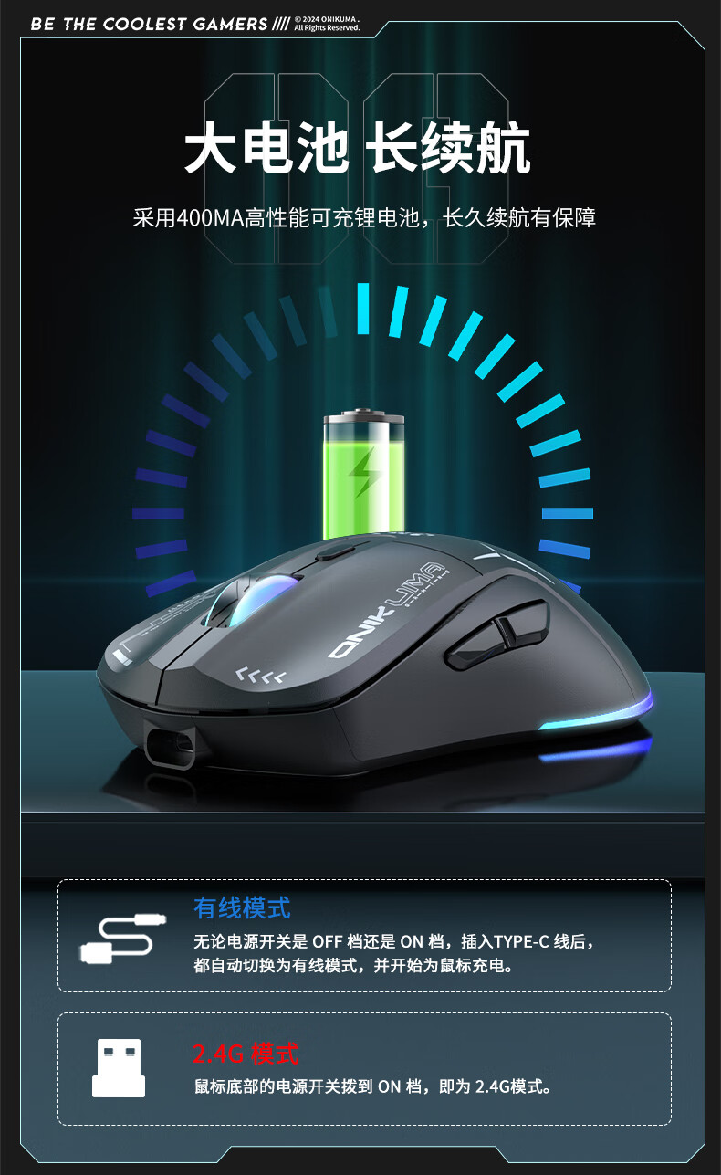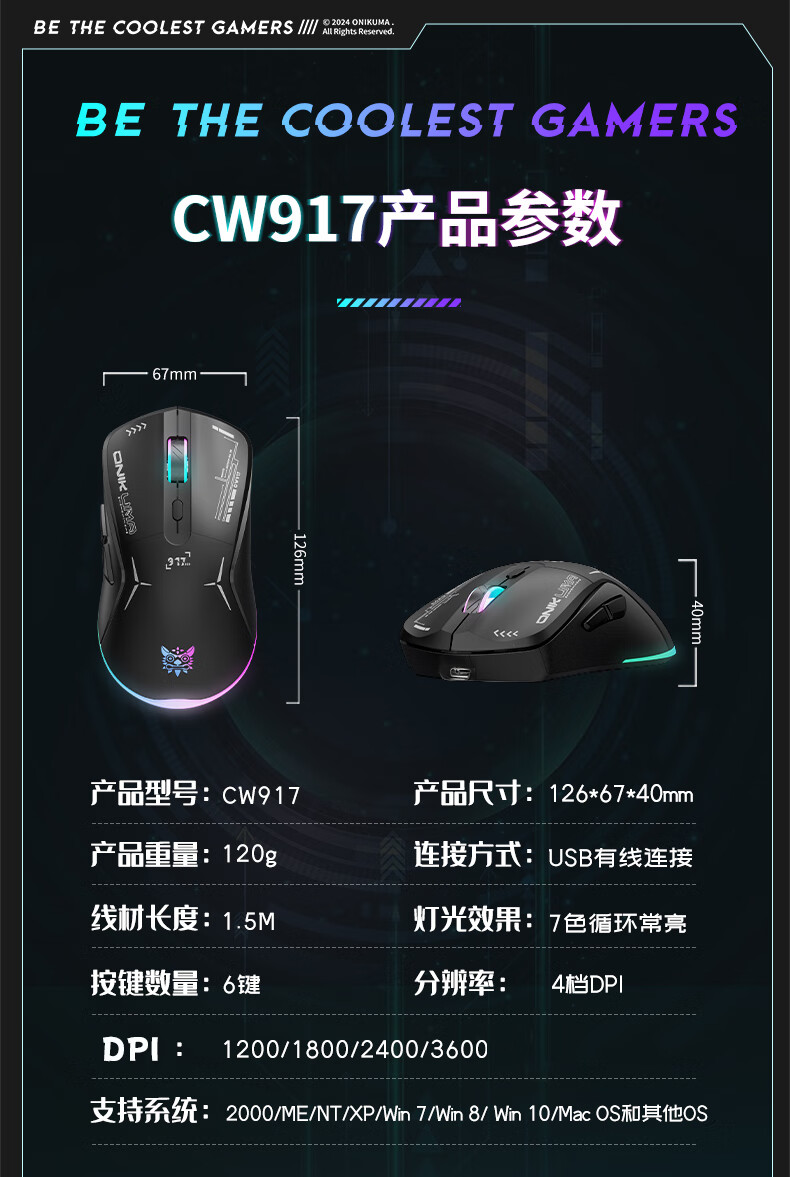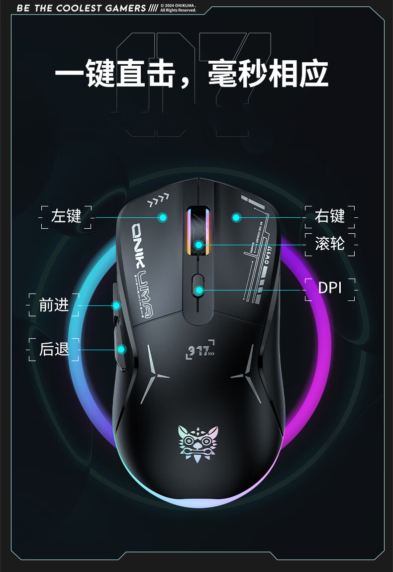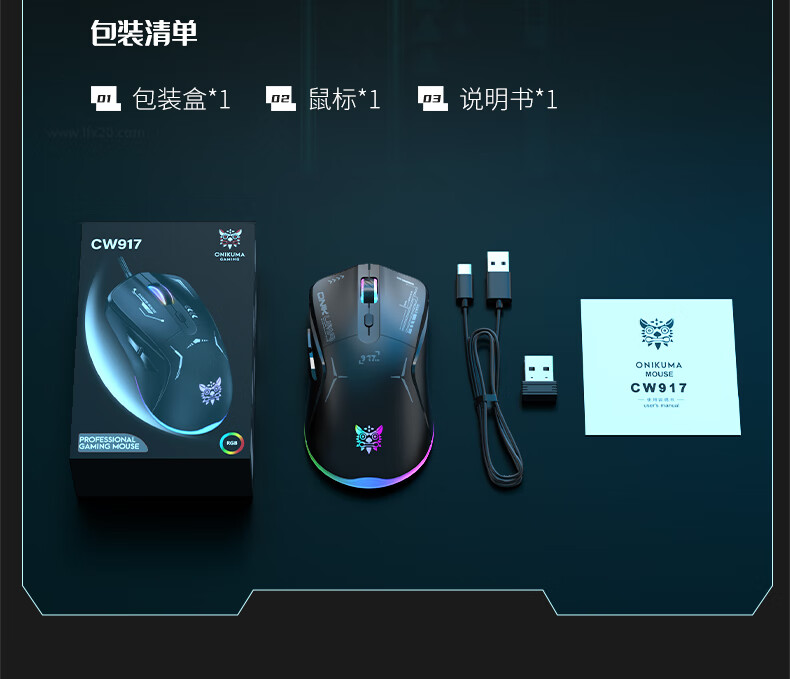 ONIKUMA CW917 2.4G/有线双模版 无线鼠标 黑色(单位:个)