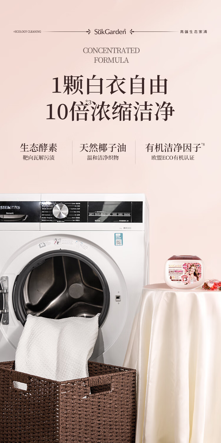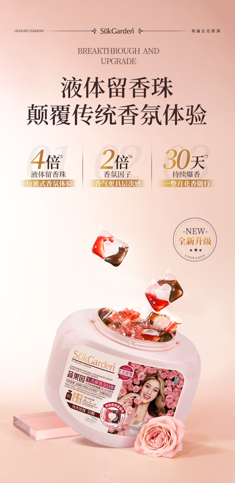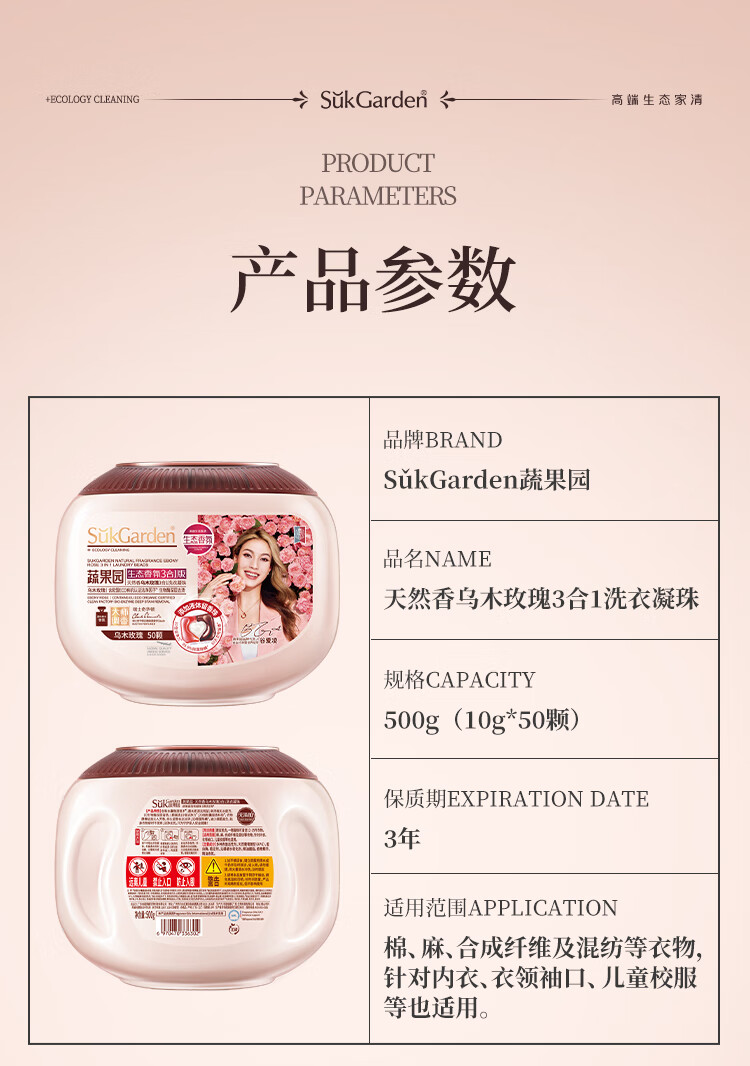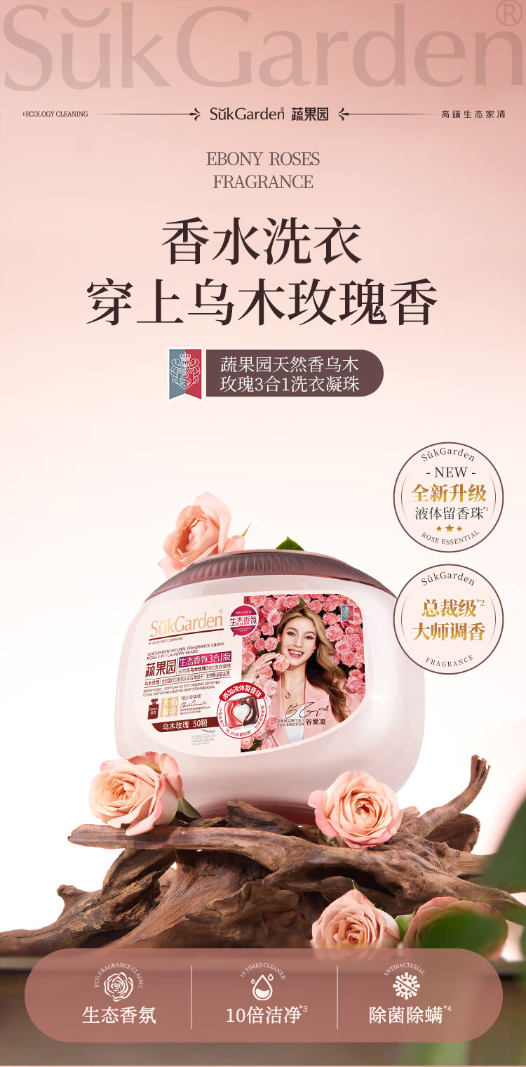 蔬果园(SukGarden) 天然香乌木玫瑰3合1 10g*50颗*1盒 洗衣凝珠 粉色(单位:盒)