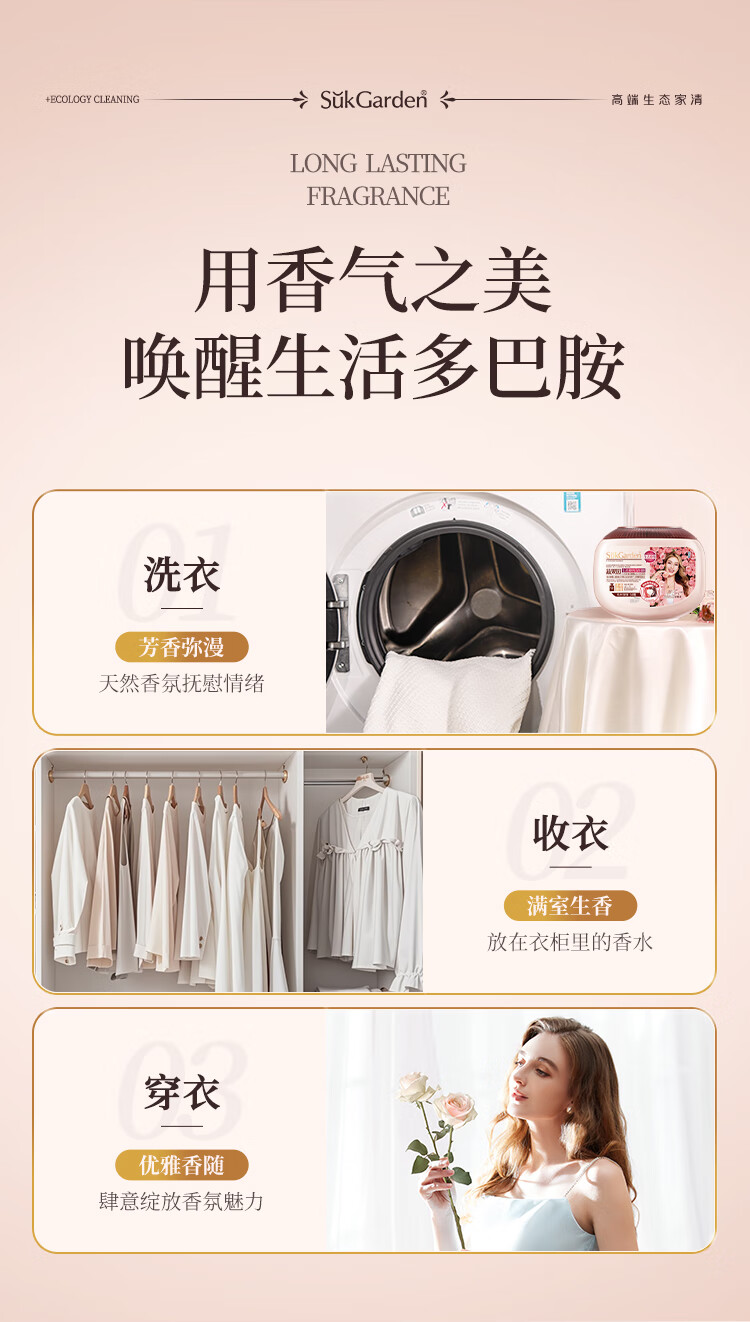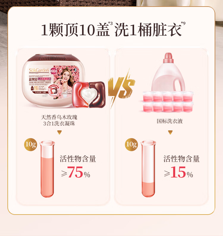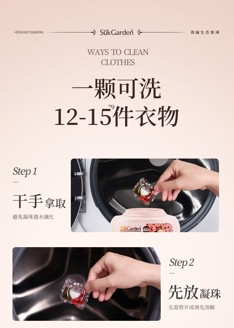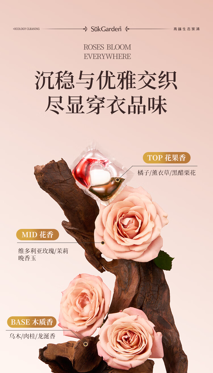 蔬果园(SukGarden) 天然香乌木玫瑰3合1 10g*50颗*1盒 洗衣凝珠 粉色(单位:盒)