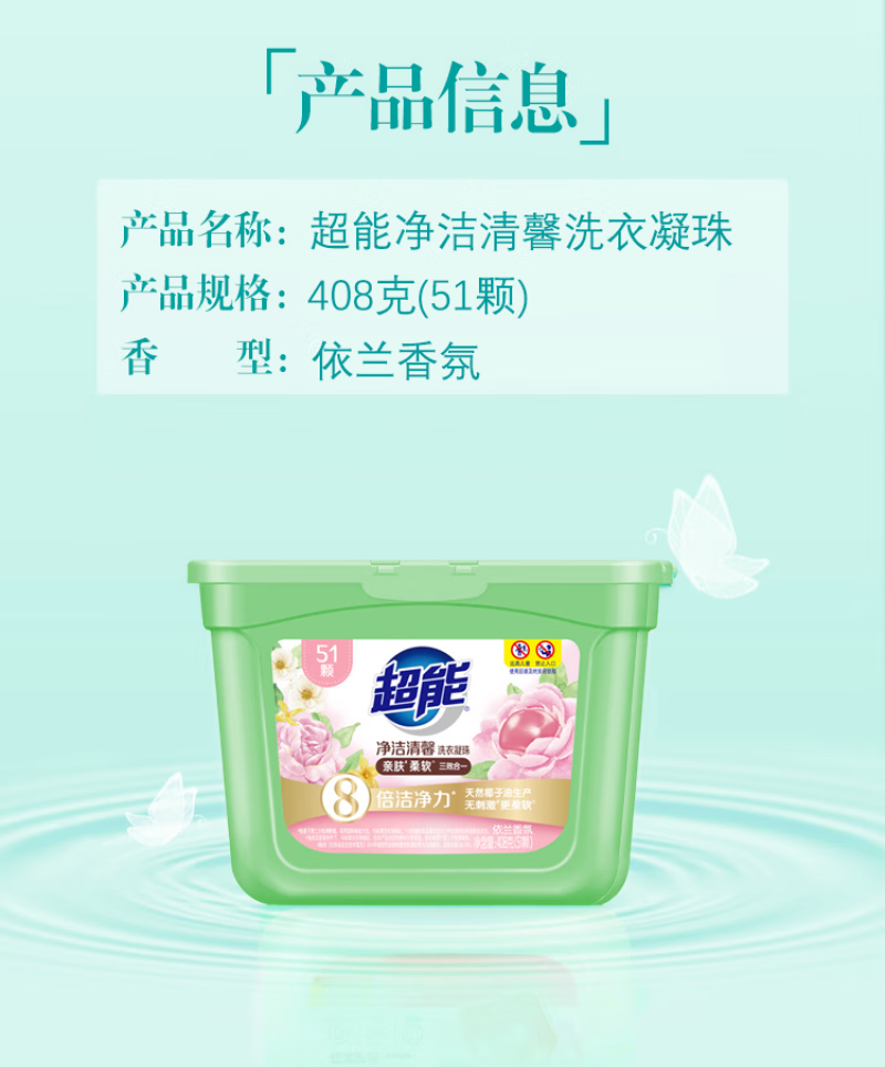 超能 洗衣凝珠 408g(51颗) 净洁清馨 绿色(单位:盒)