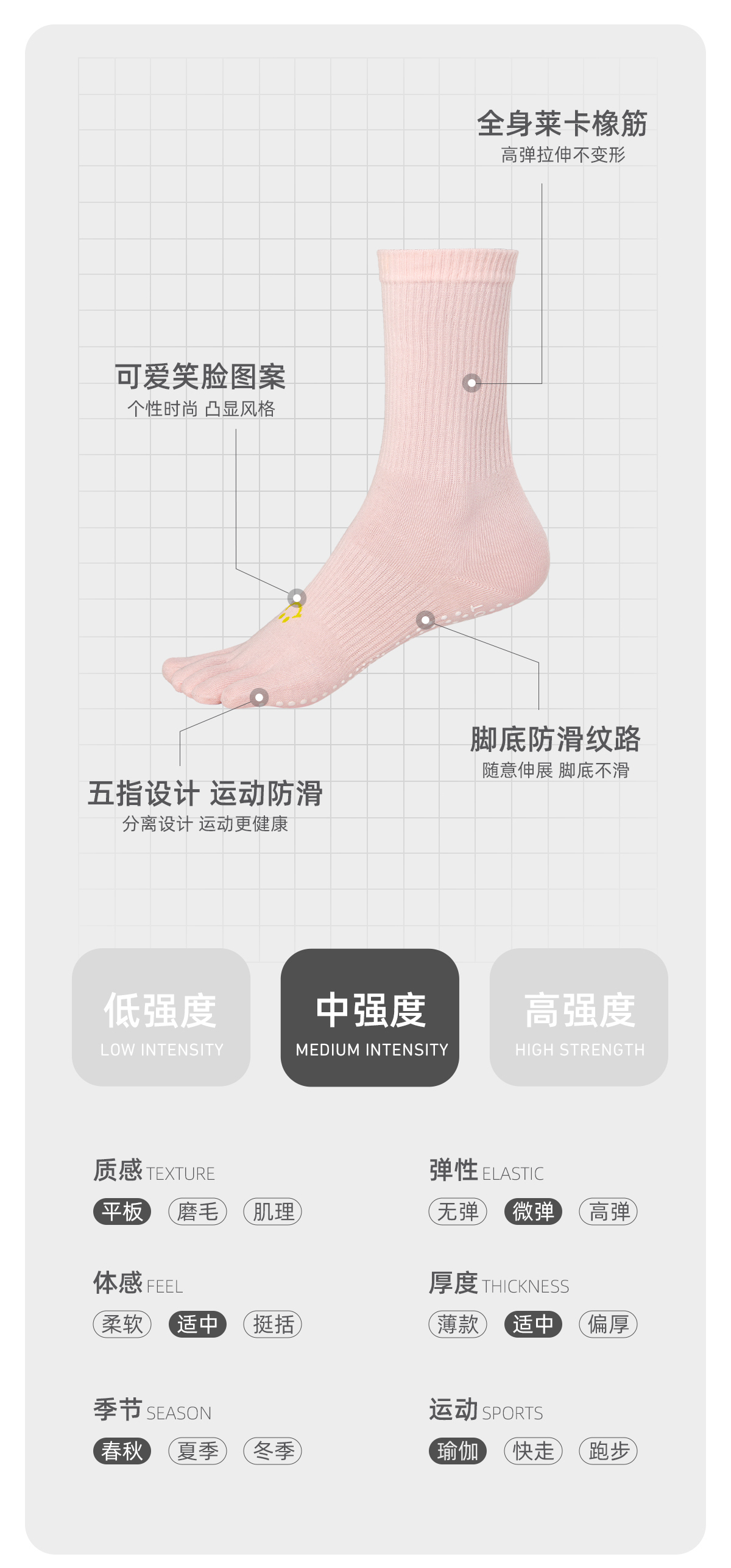 YOTTOY 五指中筒笑脸瑜伽袜 wzyj2307x1C000M0000k002 m码 黑色(单位:双)