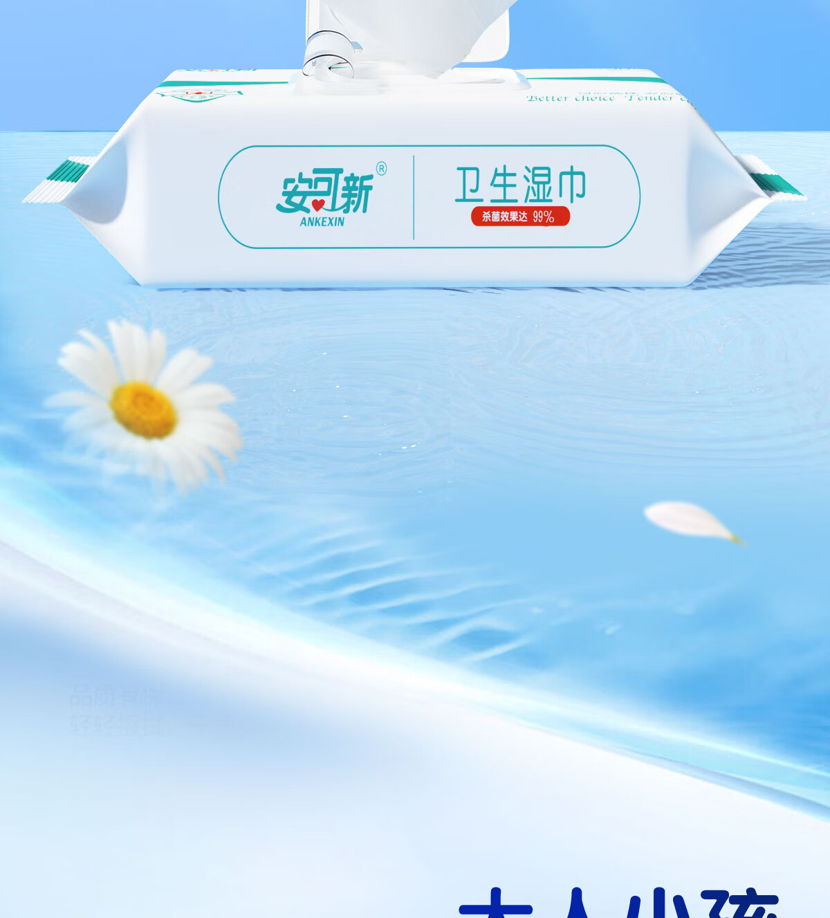 安可新 无酒精卫生湿纸巾双层锁水杀菌率99% AKX-4970-5 50抽*5包 混色(单位:组)