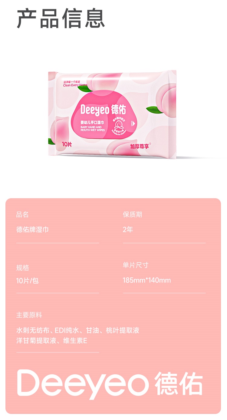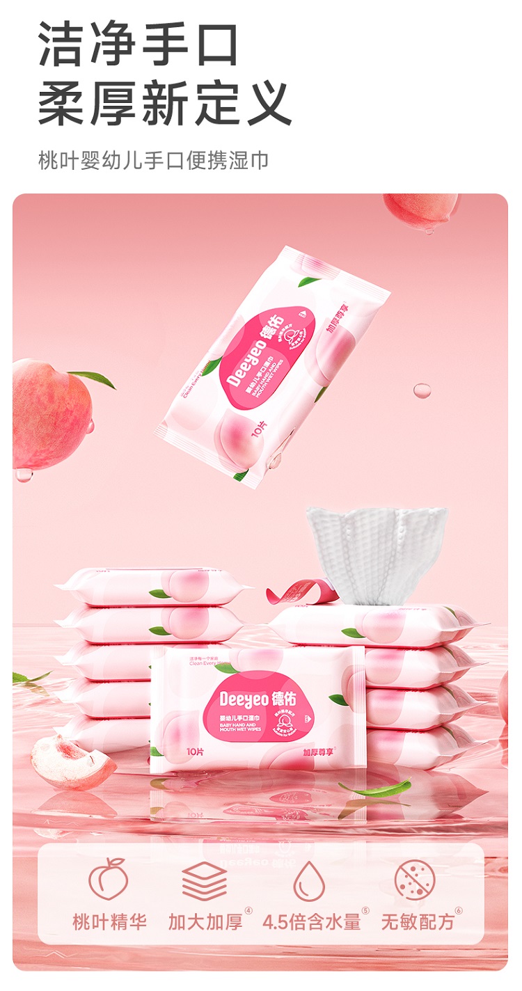 德佑 婴幼儿手口湿巾桃叶款 2007DYWP216 10片*10包 粉色(单位:组)
