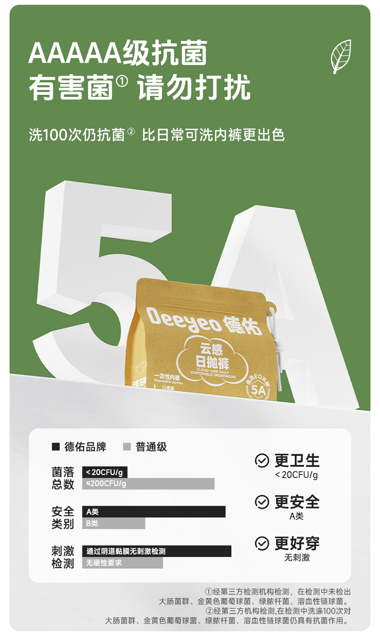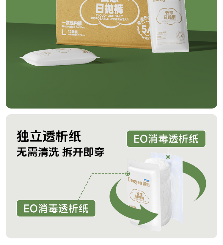 德佑 5A级云感日抛裤一次性内裤XL 2001DYDU042 12条*1包 白色(单位:组 )