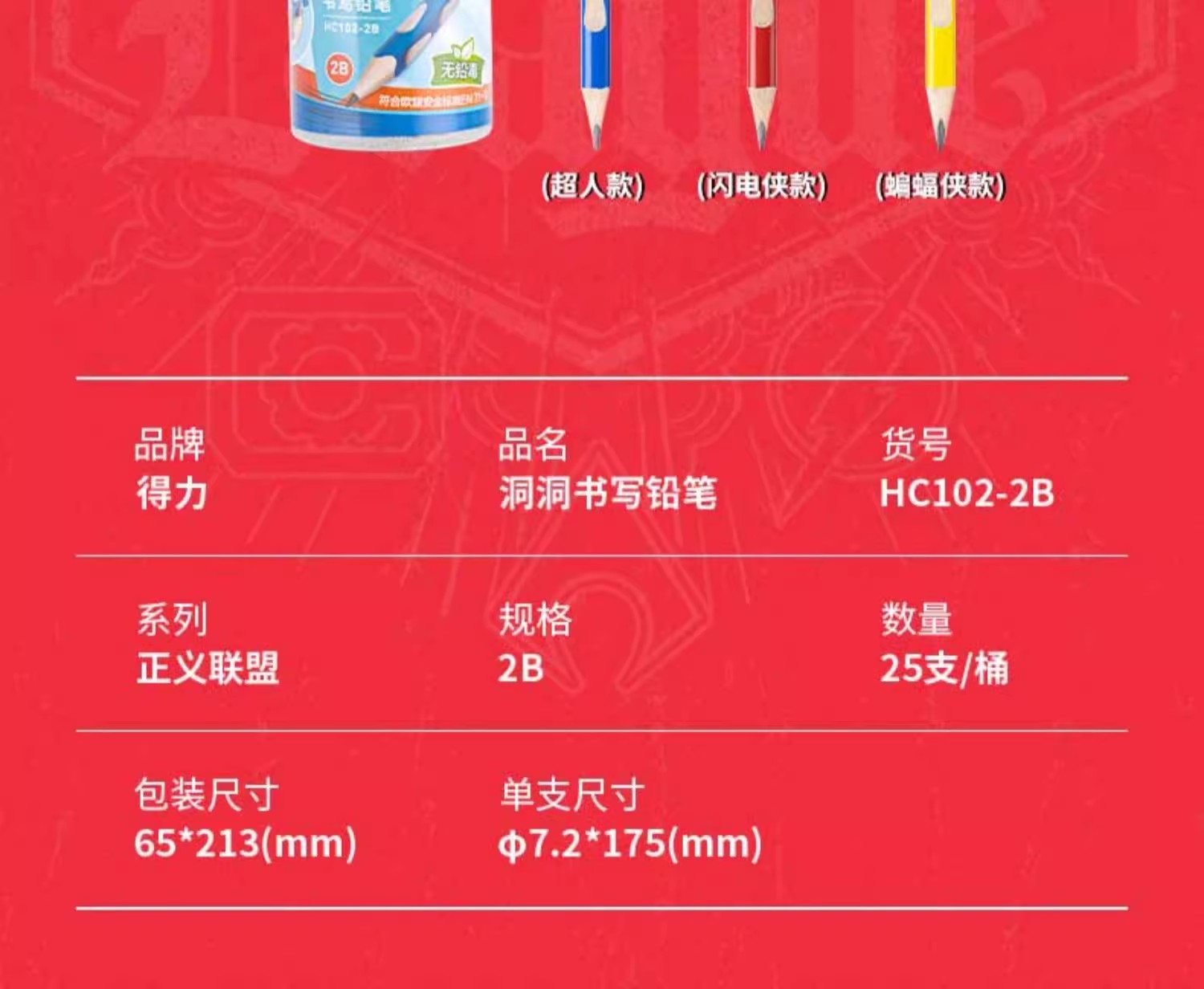 得力(deli) 正义联盟洞洞铅笔 HC102-2B 25支/筒 混色(单位:筒)