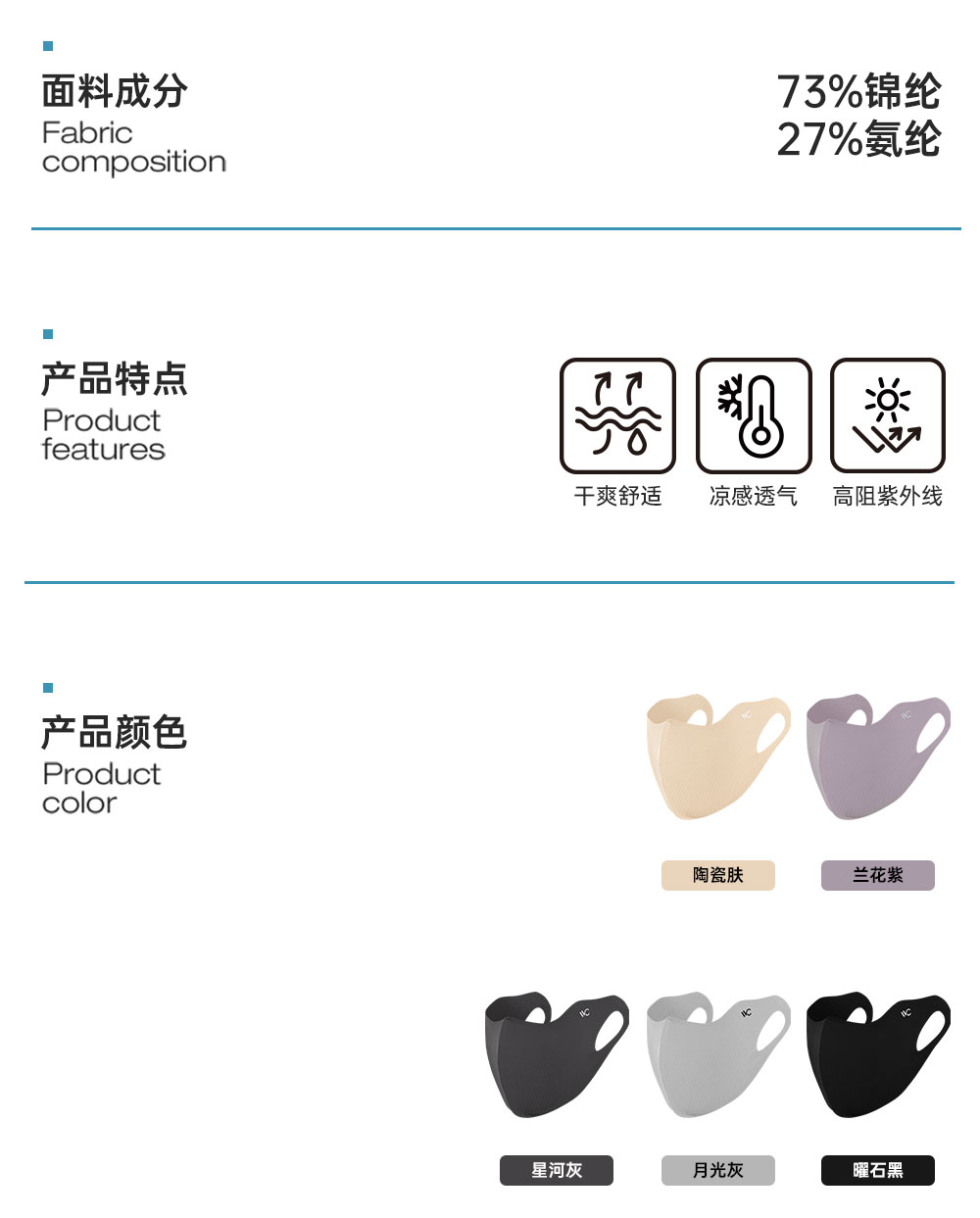 VVC 玻尿酸润肤口罩男女同款 VTK5S768 F码 月光灰(单位:个)