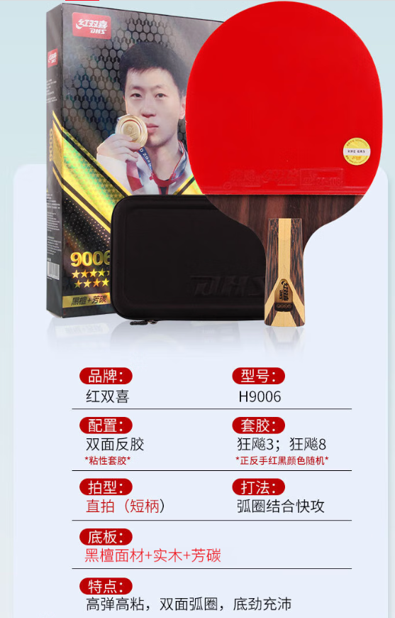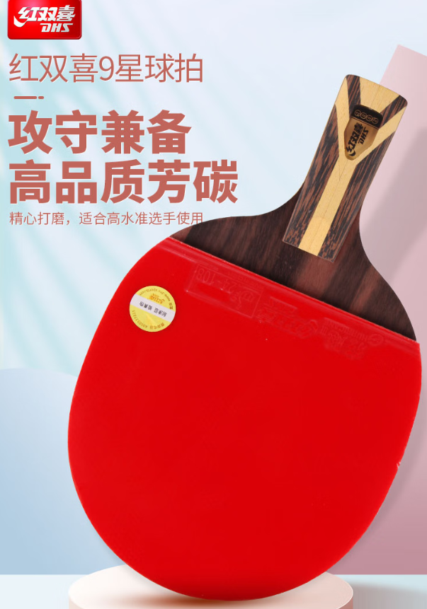 红双喜(DHS) DHS狂飚九星乒乓球拍直拍 H9006 245*150mm 红色(单位:支)
