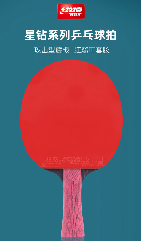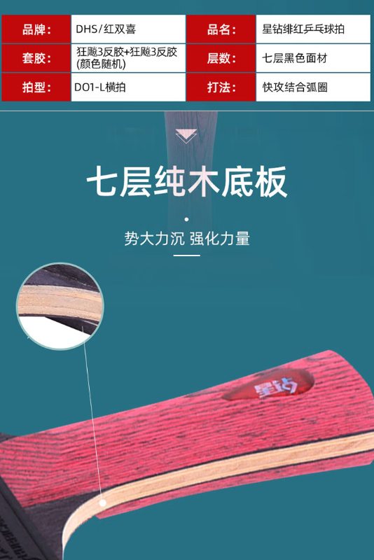 红双喜(DHS) DHS狂飚专业星钻乒乓球拍全能型横拍 D01-L 258*150mm 黑红色(单位:支)