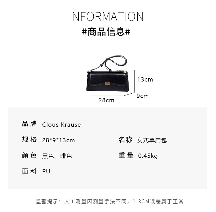 ClousKrause 单肩斜挎女包 8102130001 28*9*13cm 黑色(单位:个)