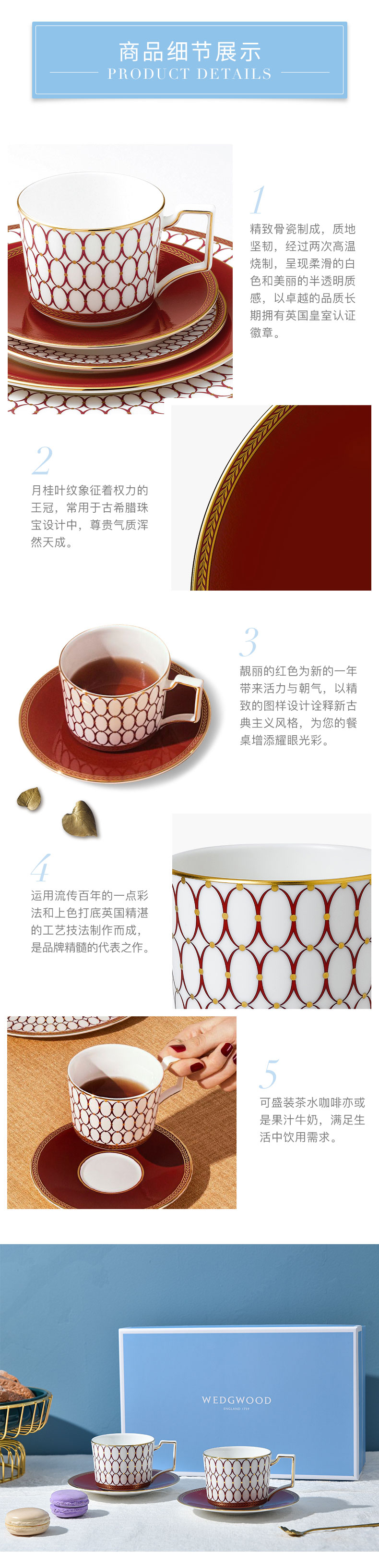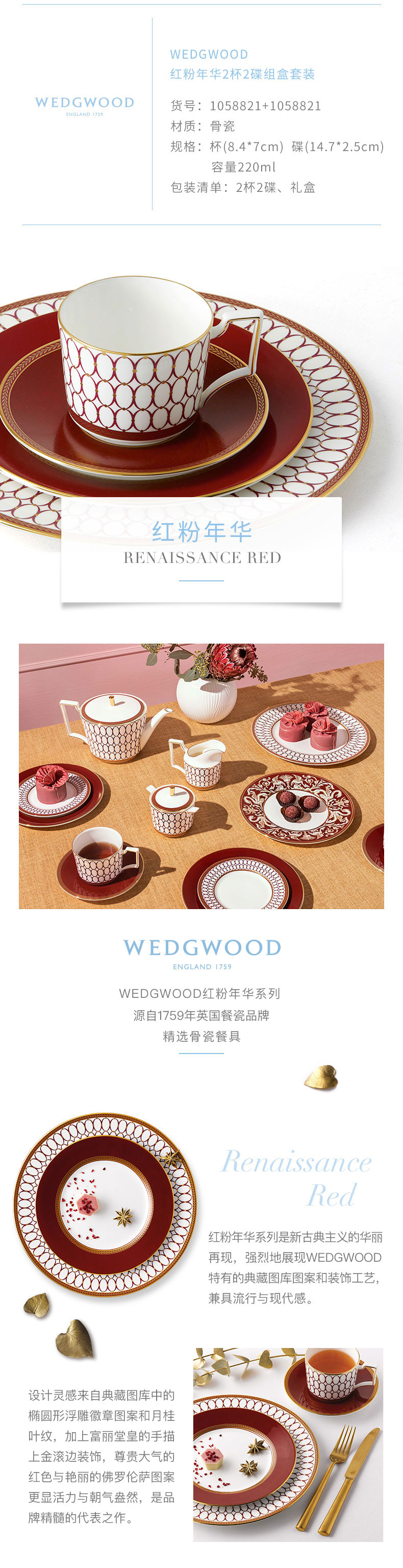 WEDGWOOD 威基伍德金粉年华鎏金红2杯2碟组盒 1058821*2 200ml*2 酒红(单位:套)