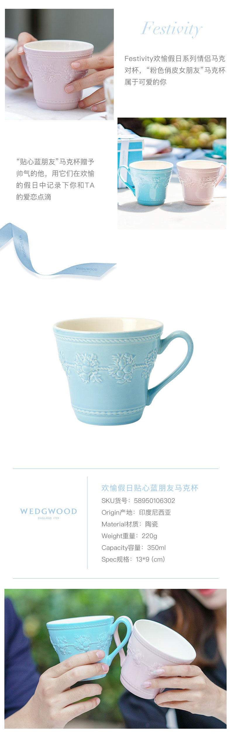 WEDGWOOD 威基伍德 欢愉假日贴心蓝朋友马克杯 58950106302 350ml*1 深蓝色(单位:个)