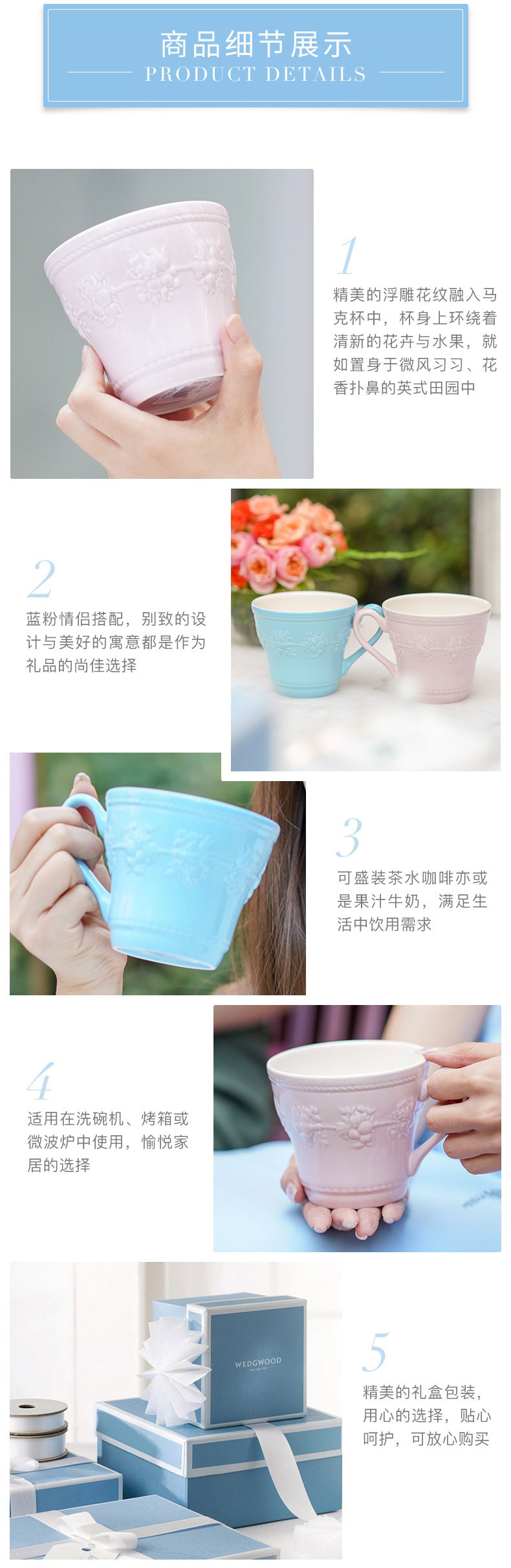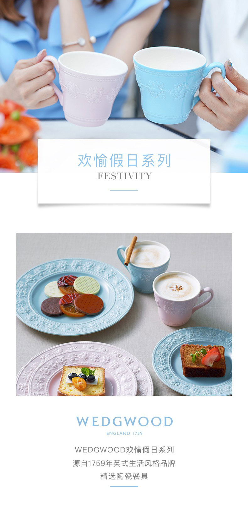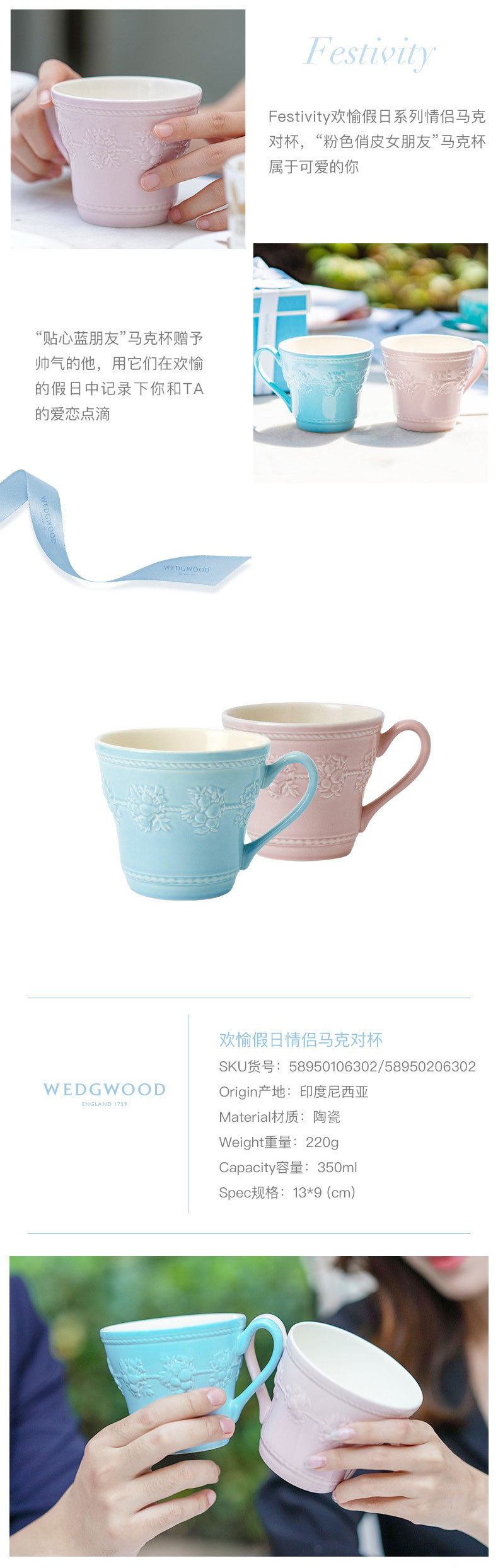 WEDGWOOD 威基伍德欢愉假日情侣马克对杯 58950106302+58950206302 350ML*2 蓝色+粉色(单位:套)