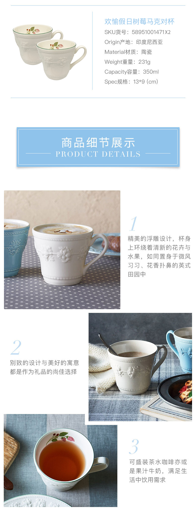 WEDGWOOD 欢愉假日树莓马克杯对杯 58951001471*2 350ML*2 白色(单位:套)