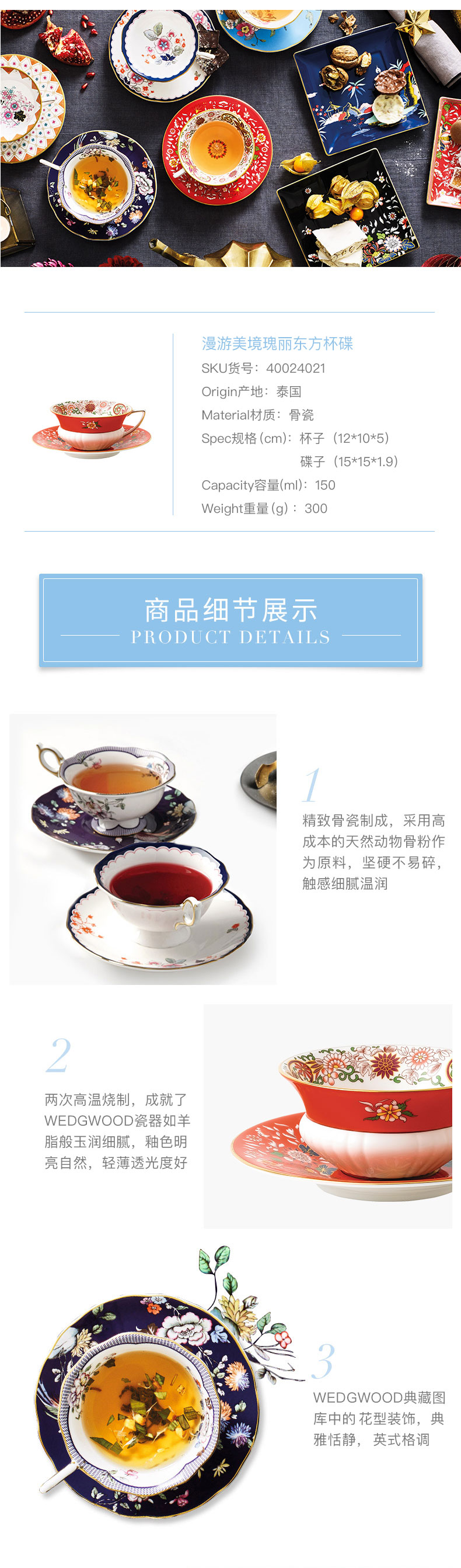 WEDGWOOD 威基伍德漫游美境瑰丽东方花茶杯碟组 40024021 150ml*1 红色(单位:套)