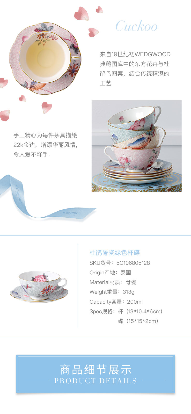 WEDGWOOD 威基伍德杜鹃杯碟组 5C106805128 200ml*1 浅绿(单位:套)