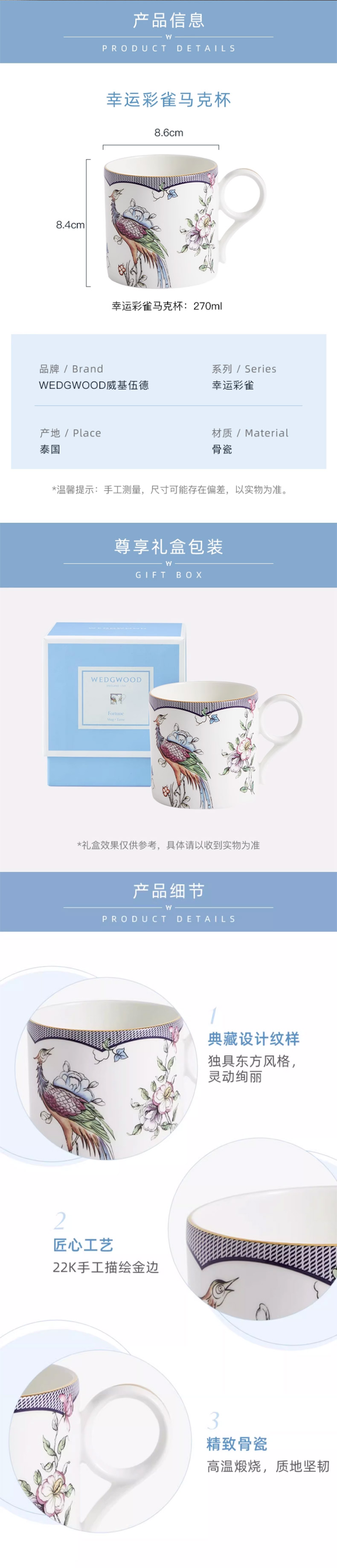 WEDGWOOD 威基伍德幸运彩雀马克杯 1069353 270ml*1 白色(单位:个)