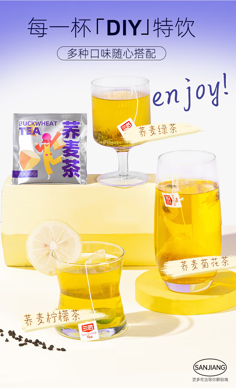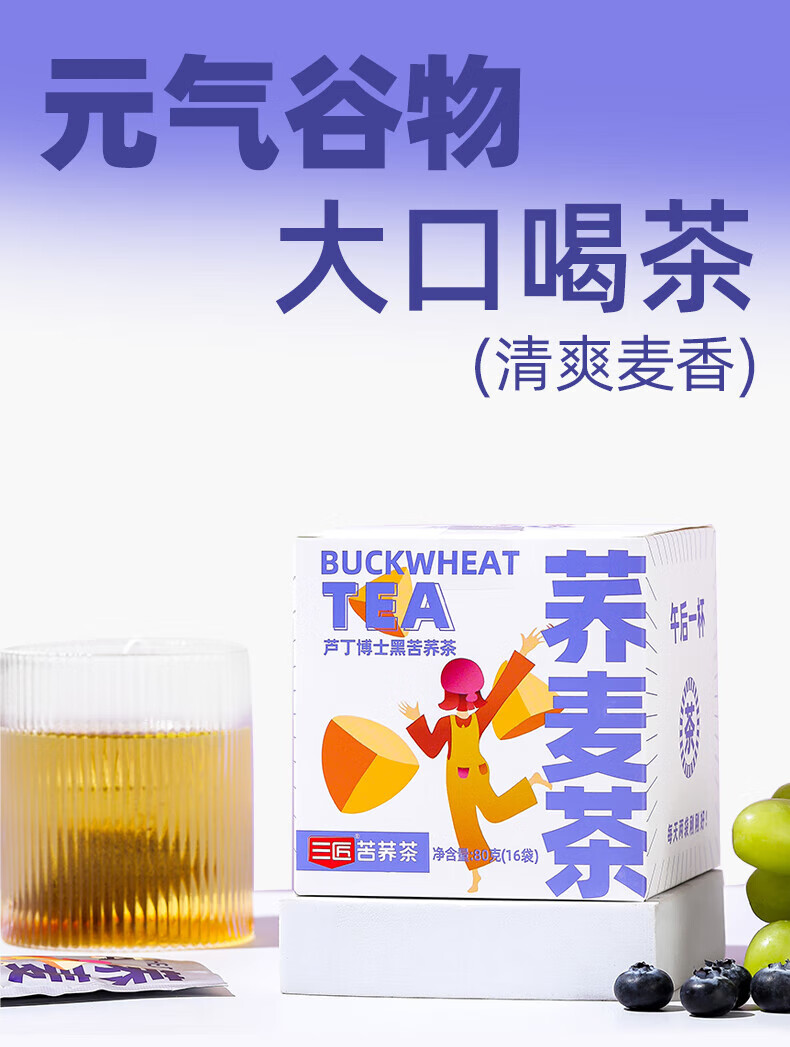 三匠 荞麦茶春夏热冷泡茶包养身茶泡水 黑苦荞茶麦香 16袋/盒(16*5g)*3盒 白色(单位:组)