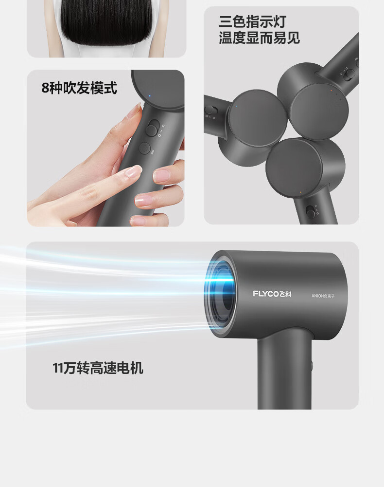 飞科(FLYCO) 电吹风 FH6370 1600W 灰色(单位:个)