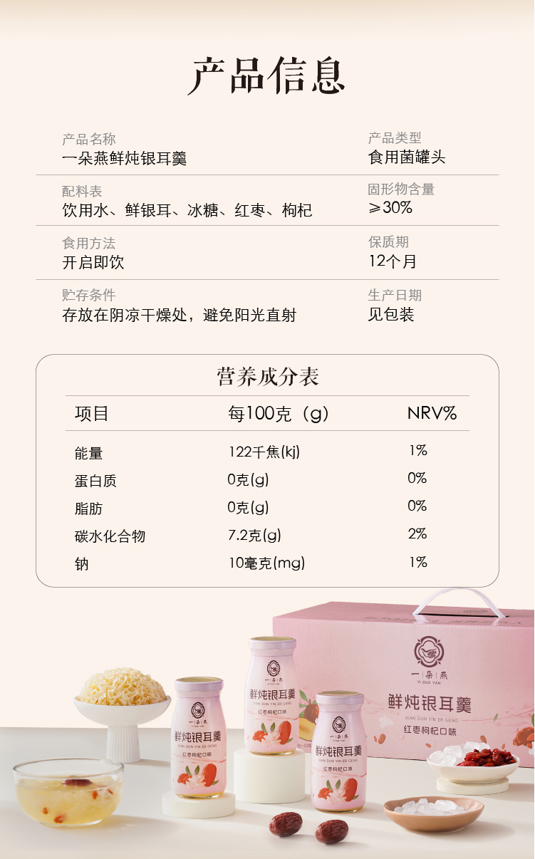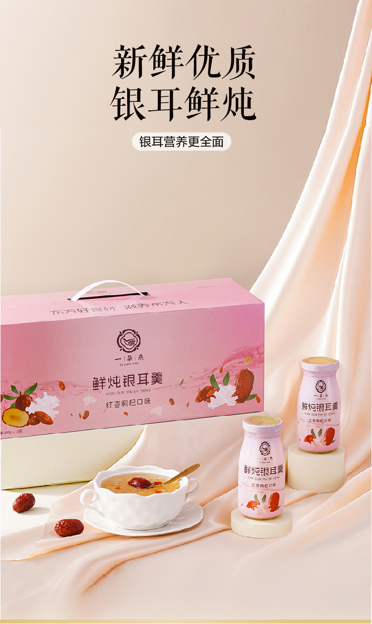 一朵燕(YIDUOYAN) 鲜炖银耳羹(红枣枸杞口味) 礼盒装 1980克(198ml*10瓶) 粉色(单位:盒)