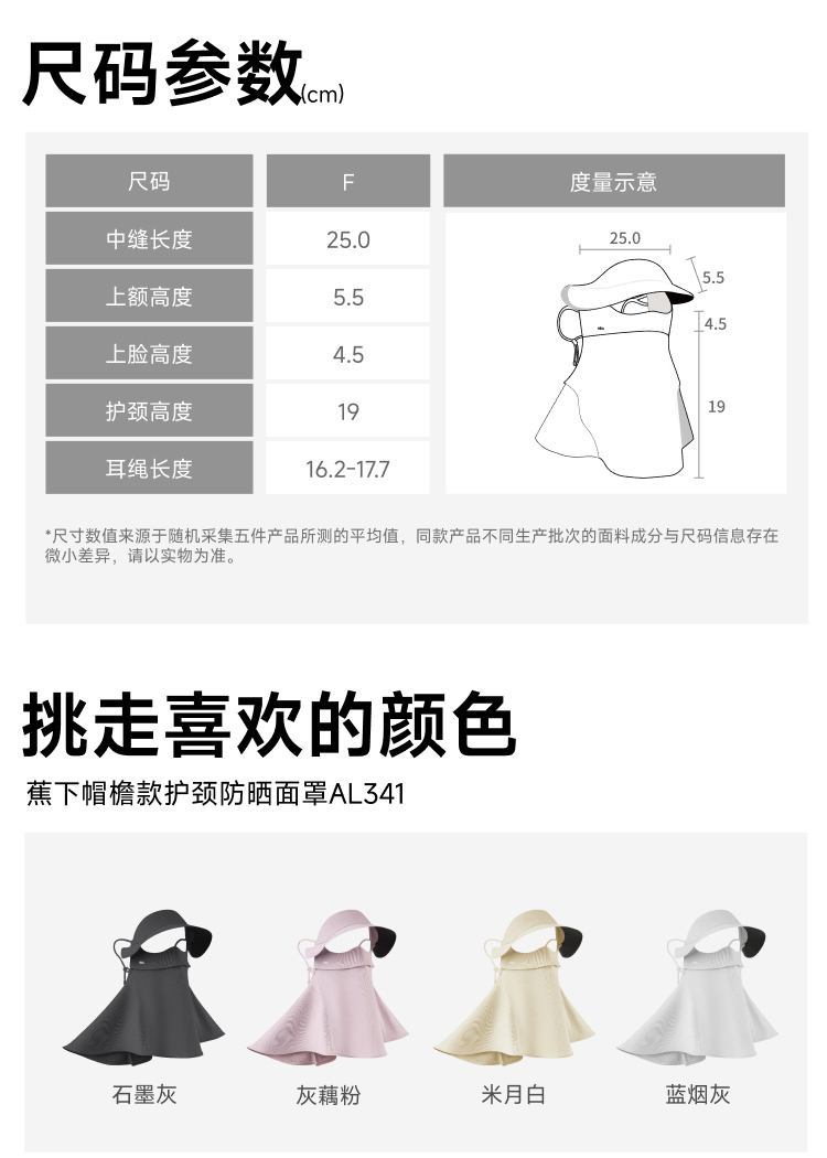 蕉下(beneunder) 帽檐款护颈防晒面罩 AL341 均码 UPF50+ 石墨灰(单位:套)