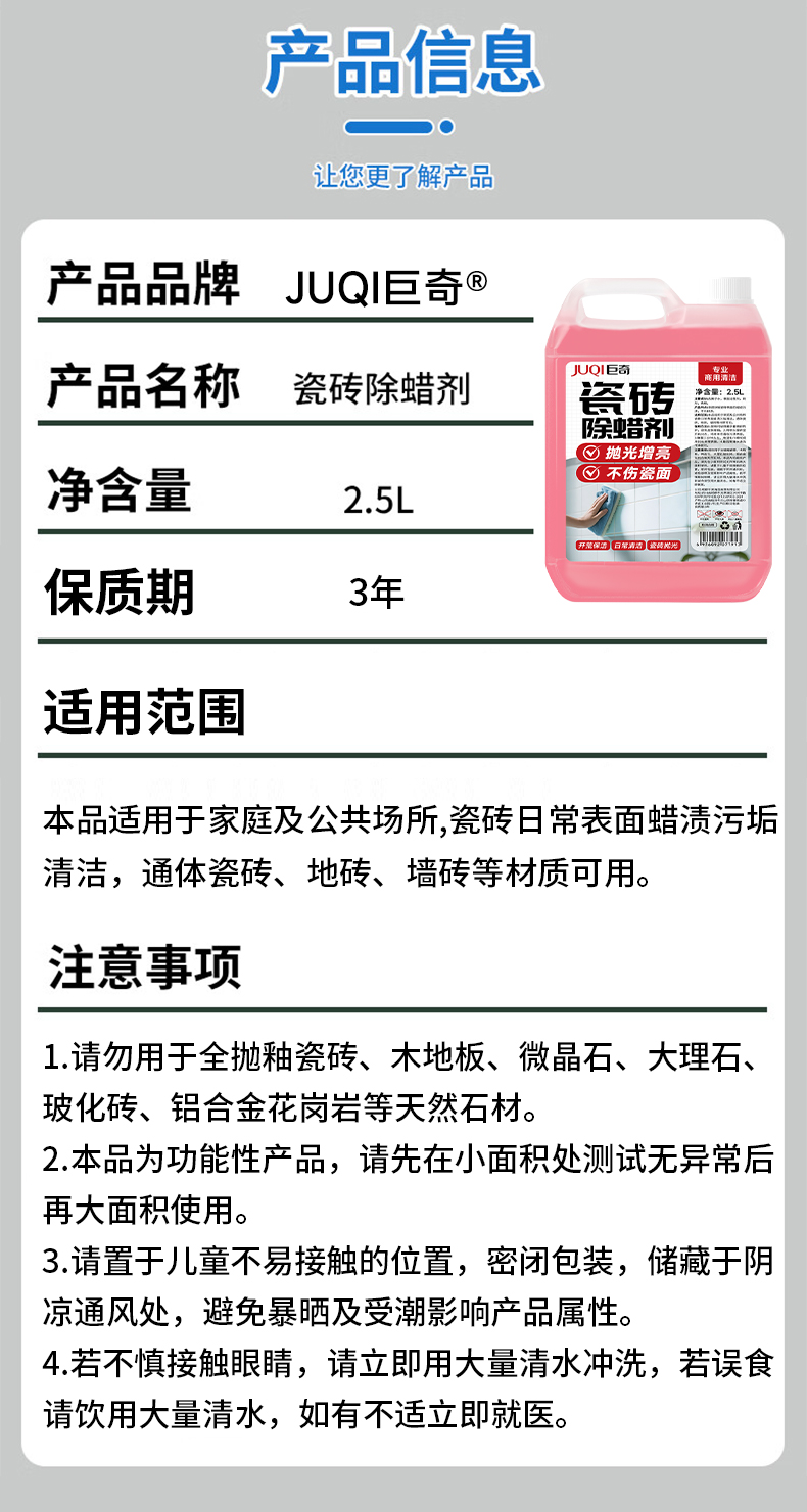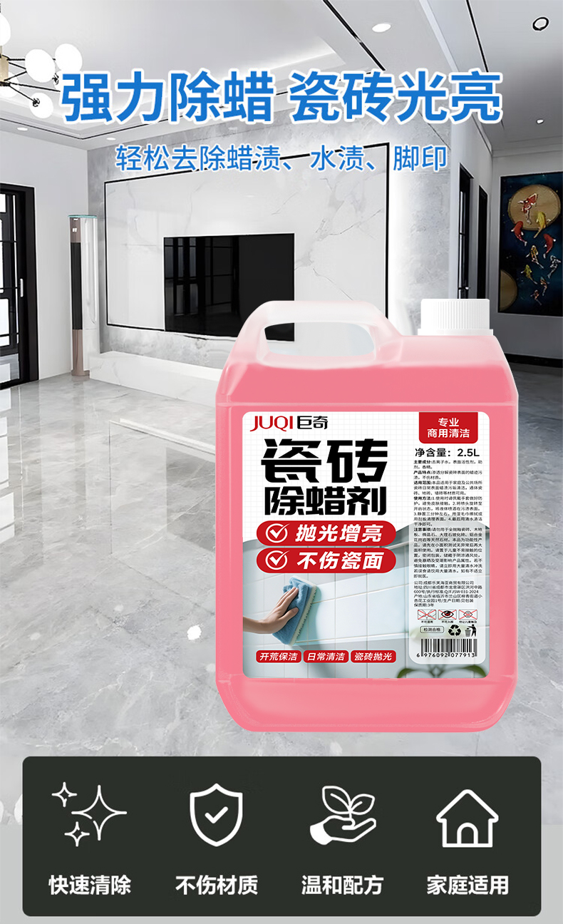 巨奇(JUQI) 瓷砖除蜡剂 大容量商用型 2.5L带5件工具 粉色(单位:套)