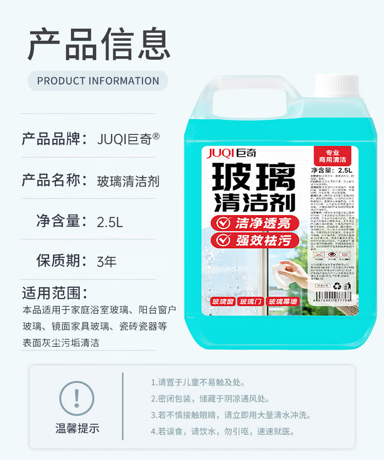 巨奇(JUQI) 玻璃清洁剂 大容量商用型 2.5L带5件工具 蓝色(单位:套)