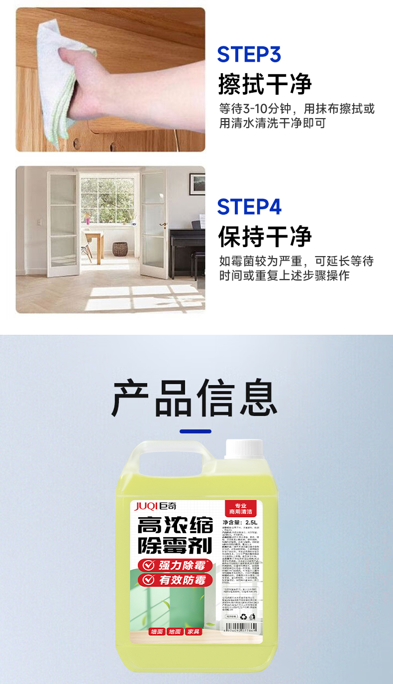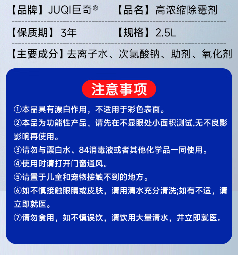 巨奇(JUQI) 高浓缩除霉剂 大容量商用型 2.5L带5件工具 混色(单位:套)
