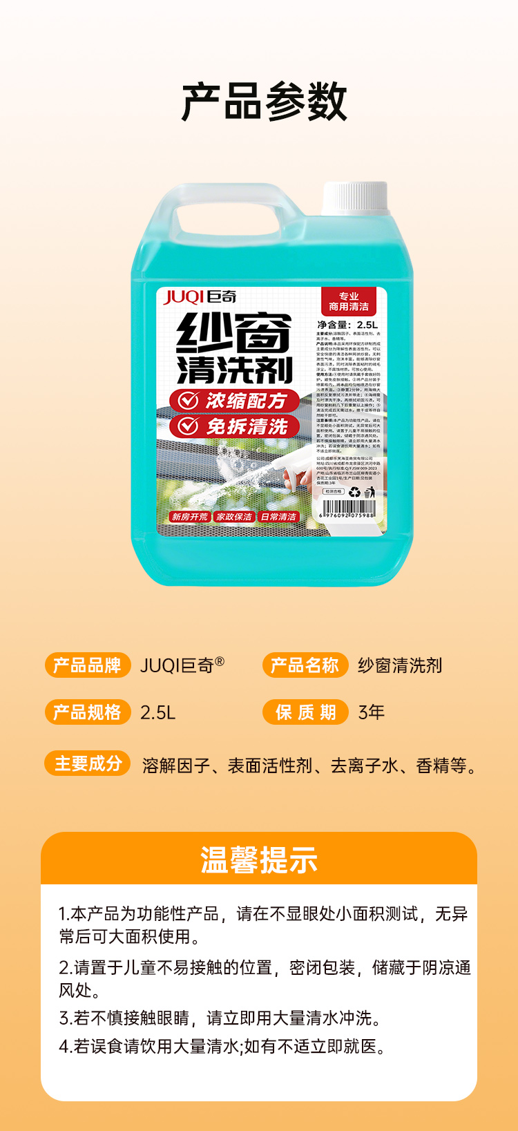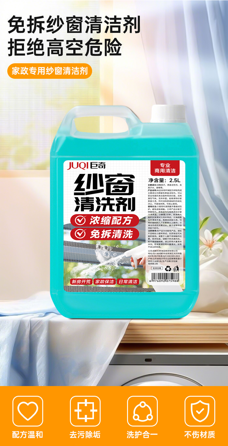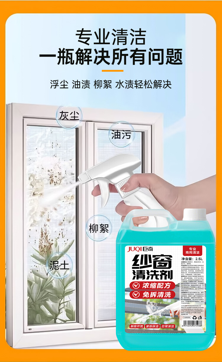 巨奇(JUQI) 纱窗清洗剂 大容量商用型 2.5L带工具 蓝色(单位:套)