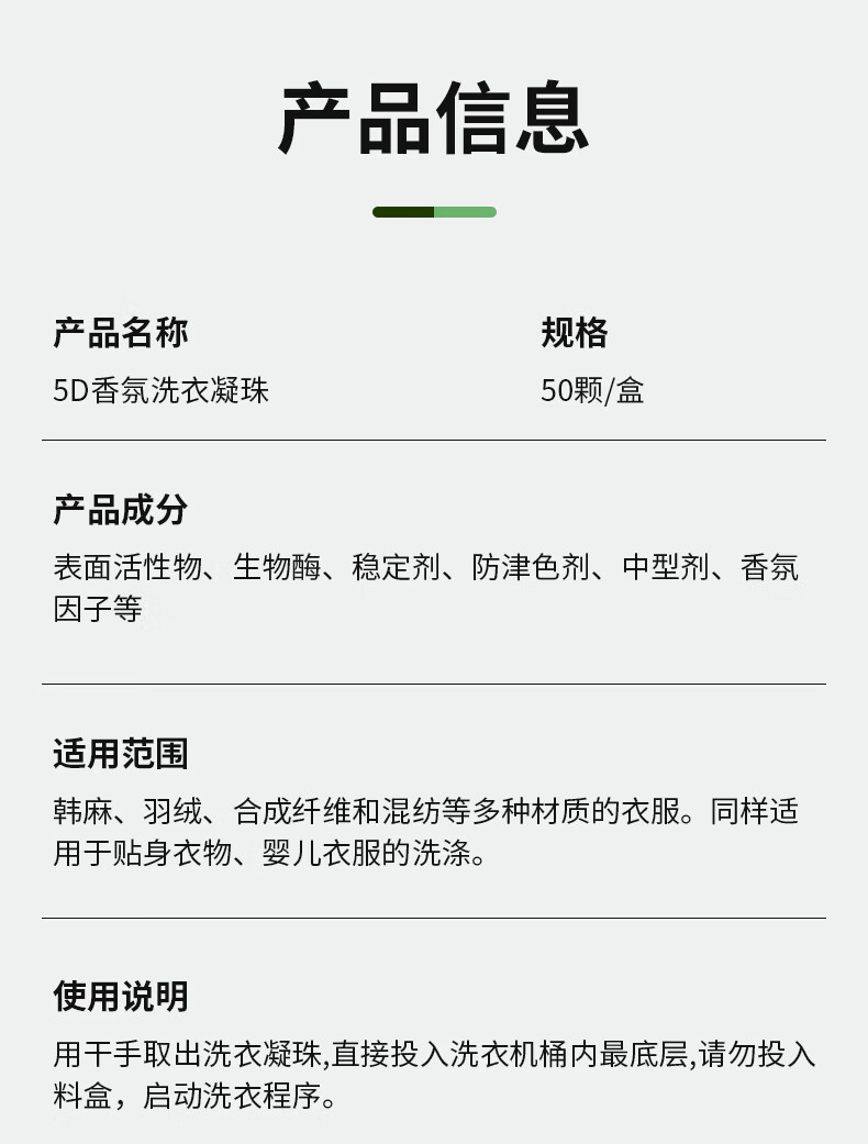 巨奇(JUQI) 5D洗衣凝珠 持久留香 8g*50颗 绿色(单位:盒)