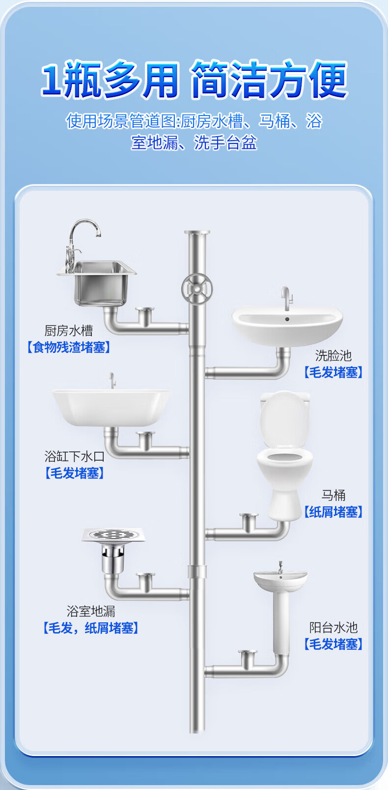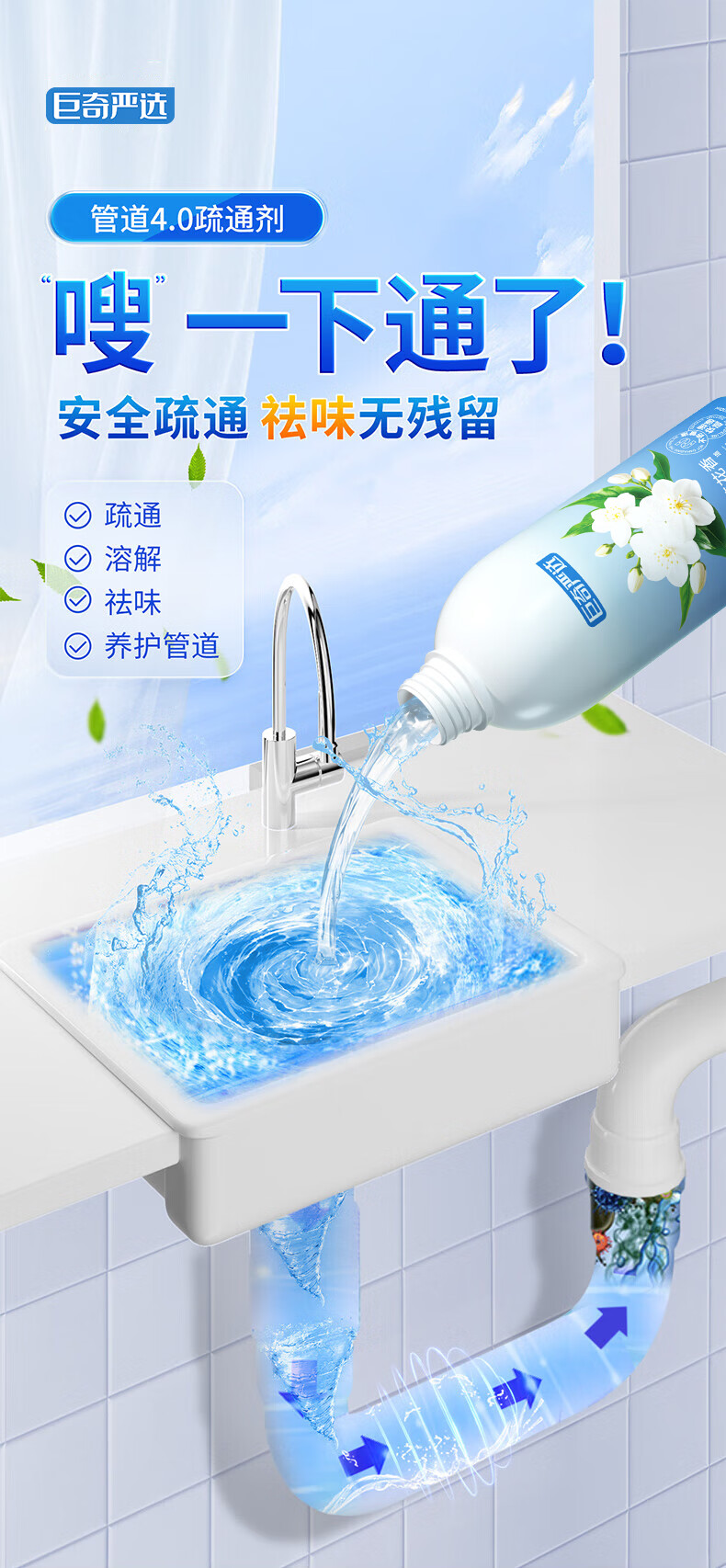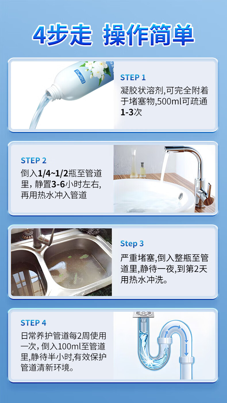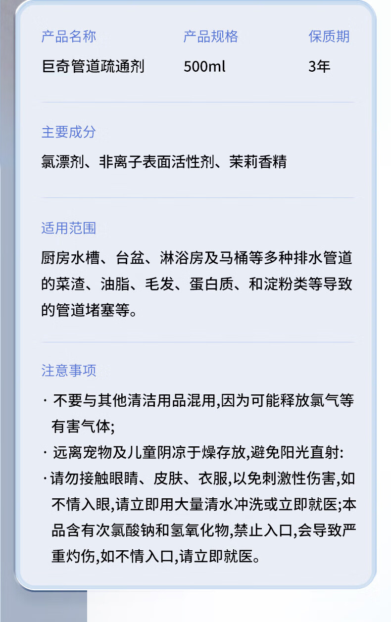 巨奇(JUQI) 花香管道疏通液 强力疏通 500ml 蓝色(单位:瓶)