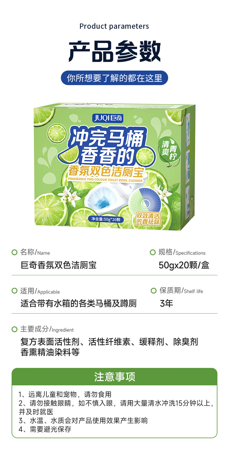 巨奇(JUQI) 洁厕宝 青柠味双色 50g*20块 绿色(单位:盒)
