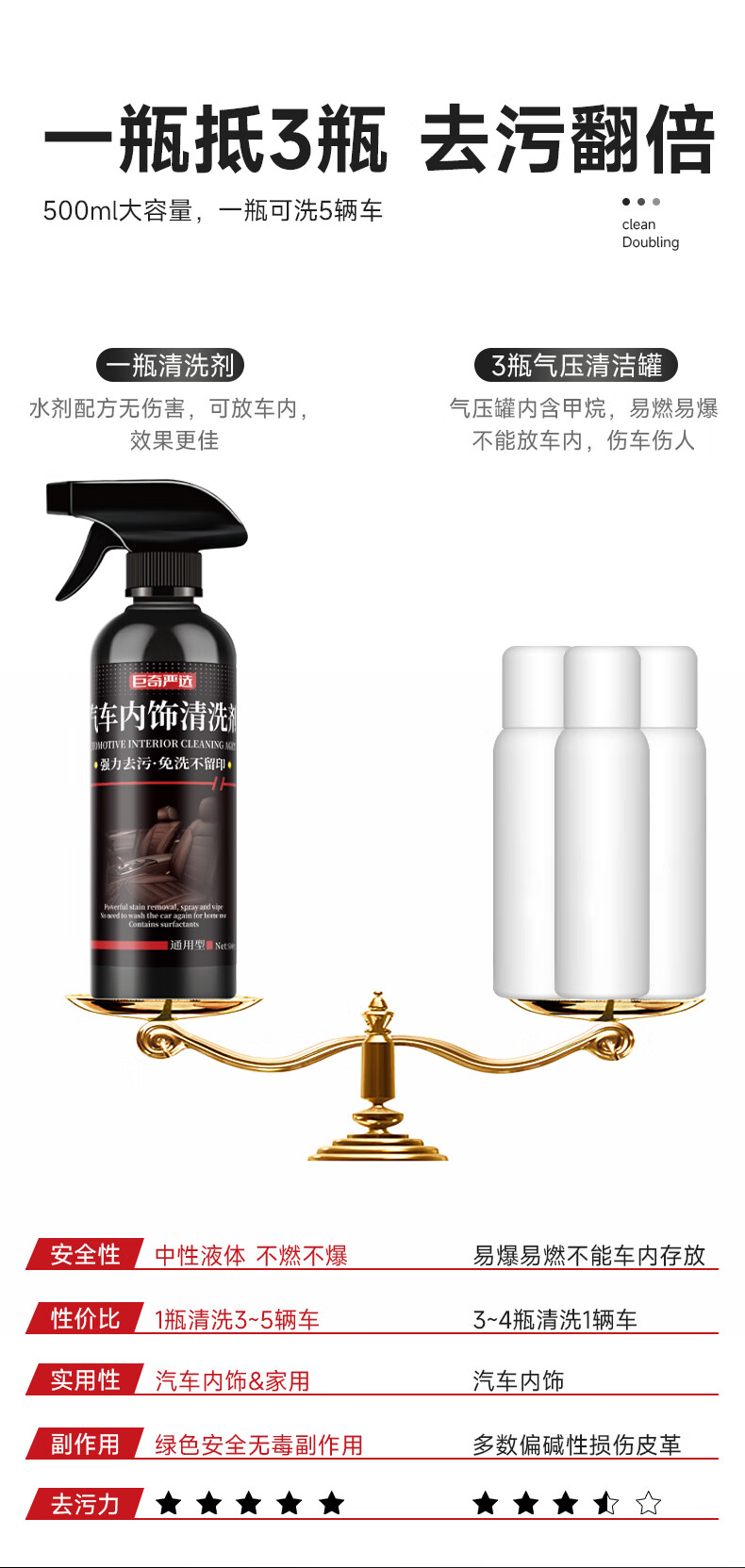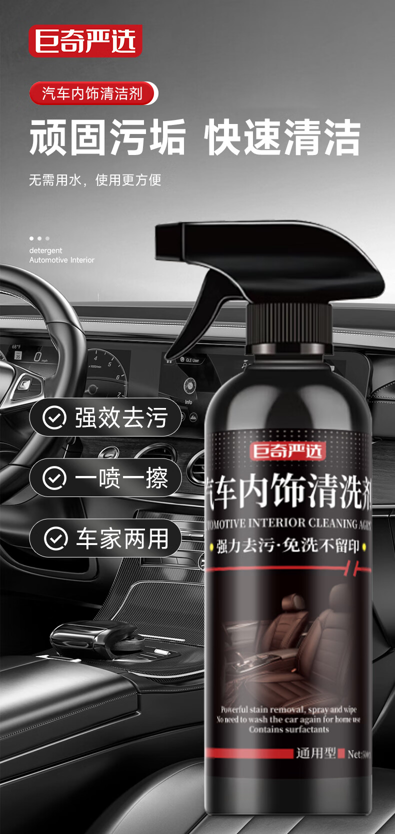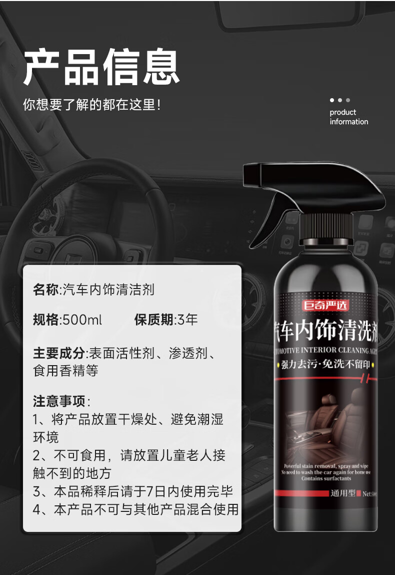 巨奇(JUQI) 汽车内饰清洗剂 皮革坐垫 500ml 黑色(单位:瓶)