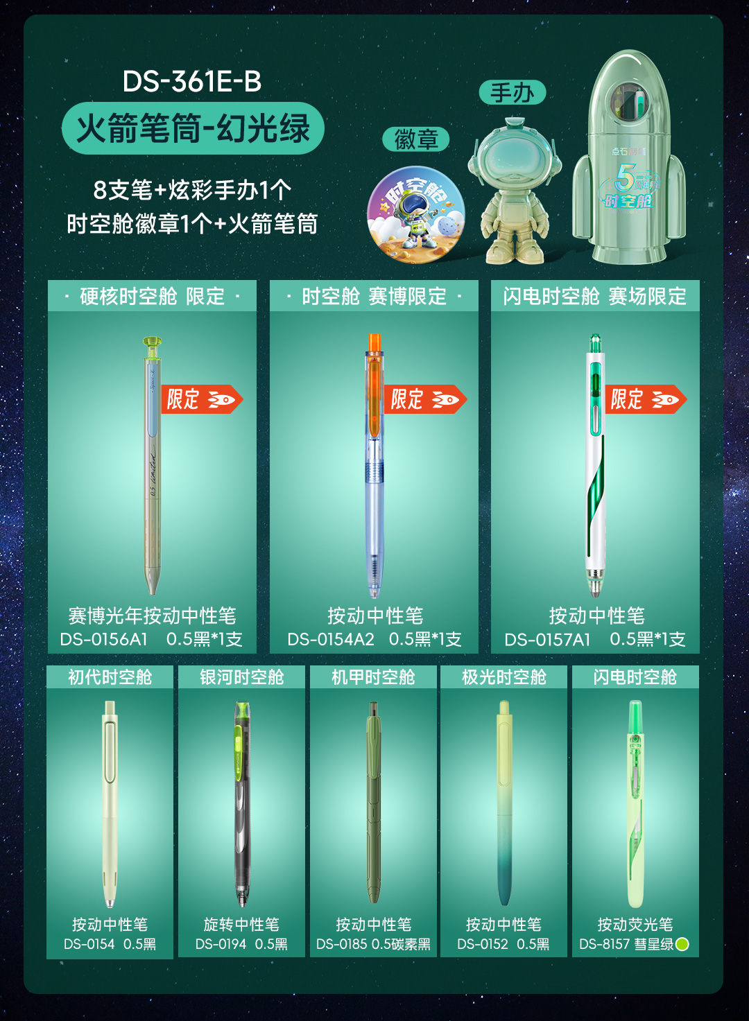 点石制笔 笔筒高颜值文具套装小学生男女孩生日礼物毕业礼物 DS-361E-B 11件套 炫光绿(单位:套)