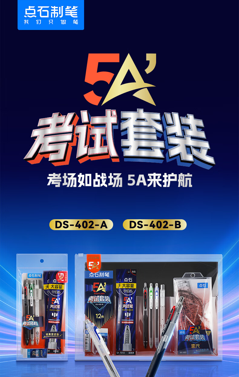 点石制笔 5A考试套装0.5mm碳素黑 DS-402-B 12件 黑色(单位:套)