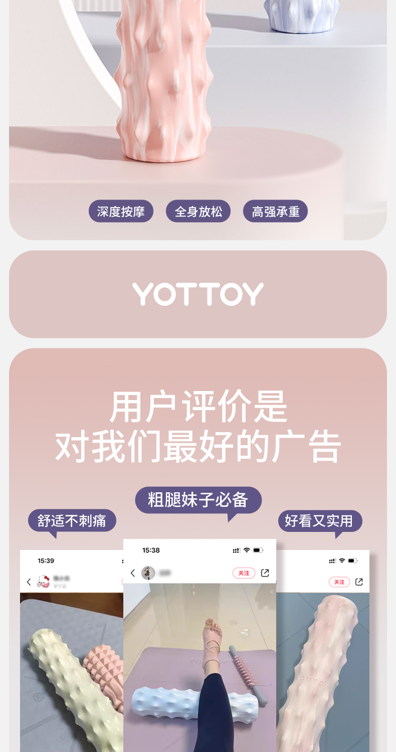 YOTTOY 加强款仙人掌泡沫轴 amzx2308x4B0001029a002 30cm 落樱粉(纯色)(单位:个)