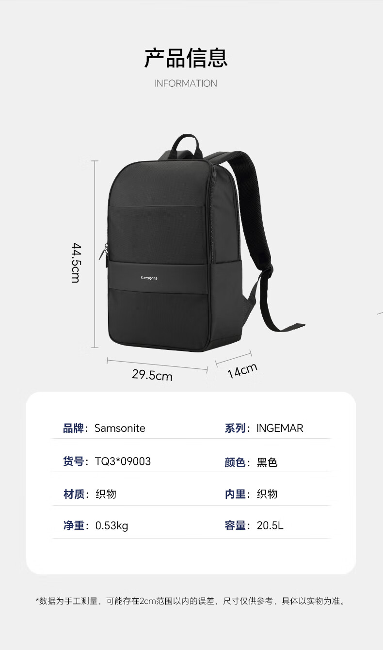 新秀丽(Samsonite) 双肩包 TQ3*09003 20.5L 黑色(单位:个)
