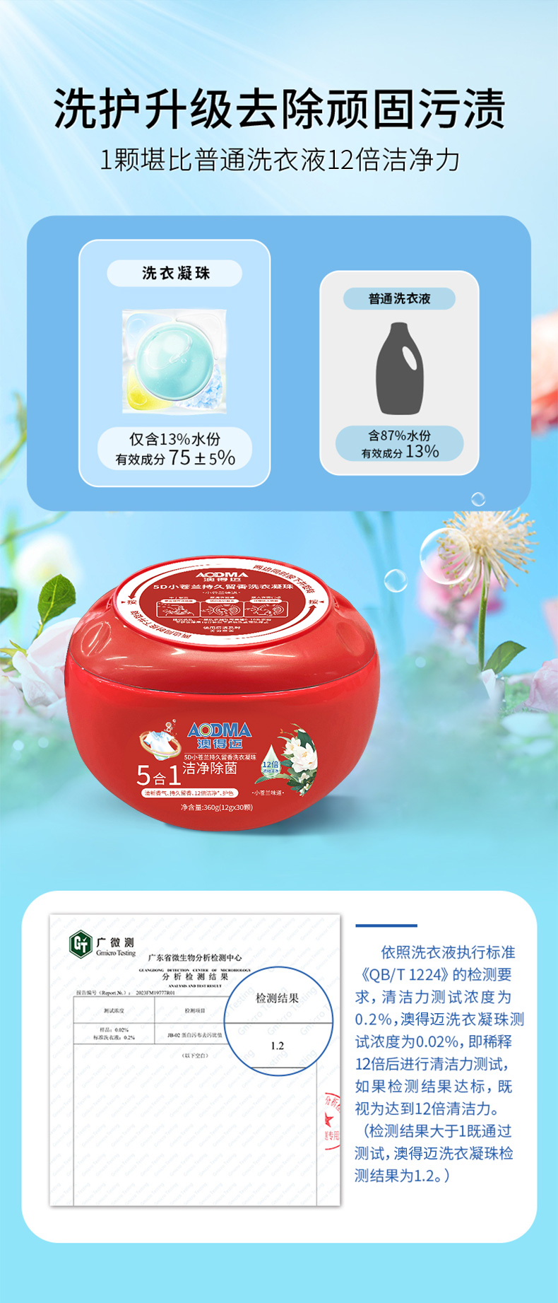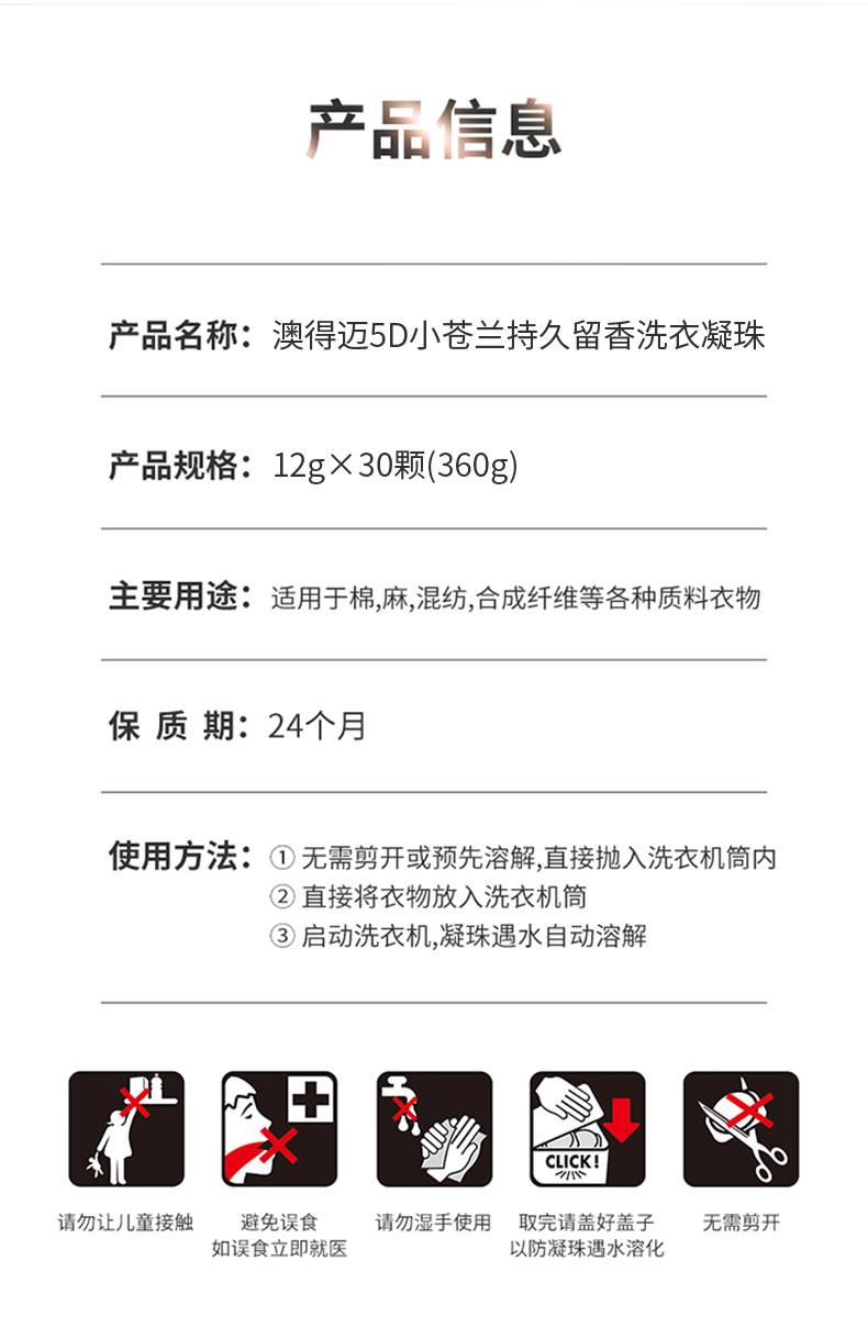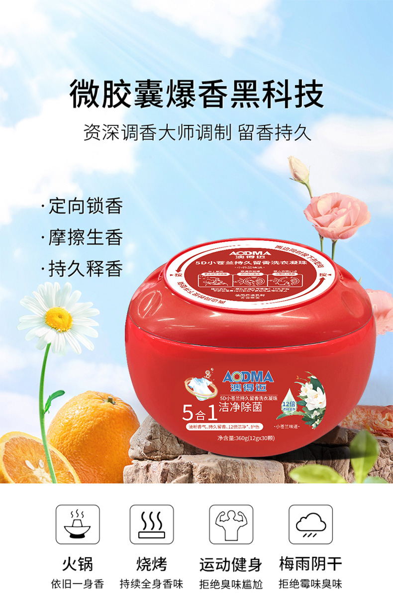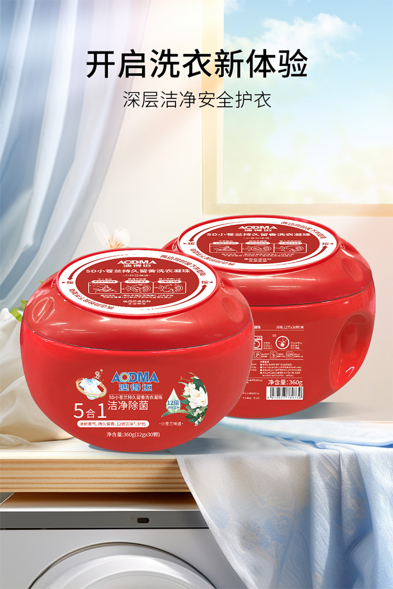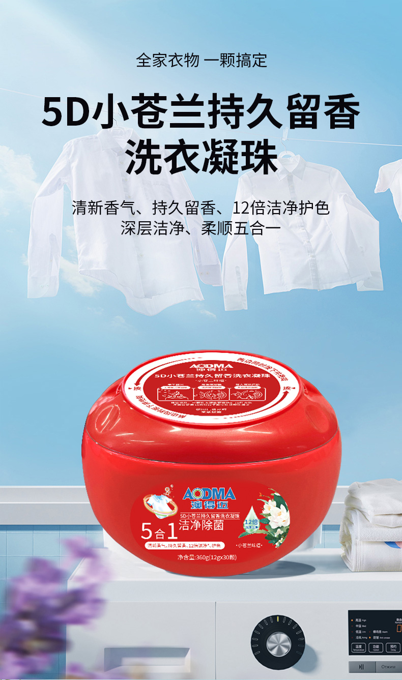 澳得迈(AODMA) 洗衣凝珠 5D小苍兰持久留香 12gx30颗/盒 红色(单位:盒)