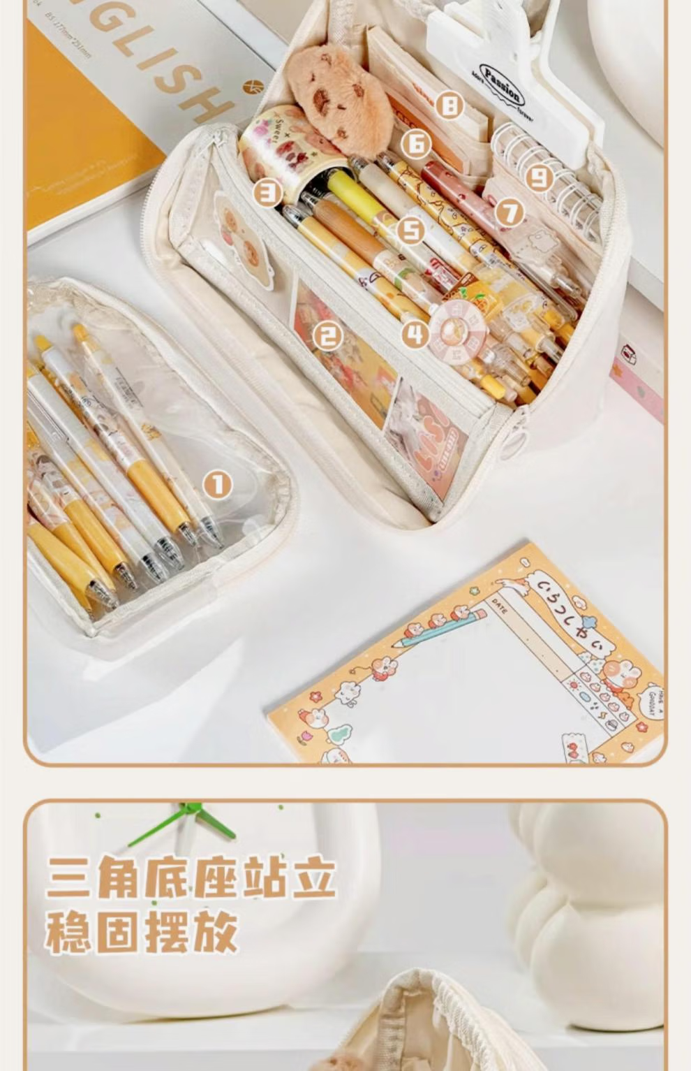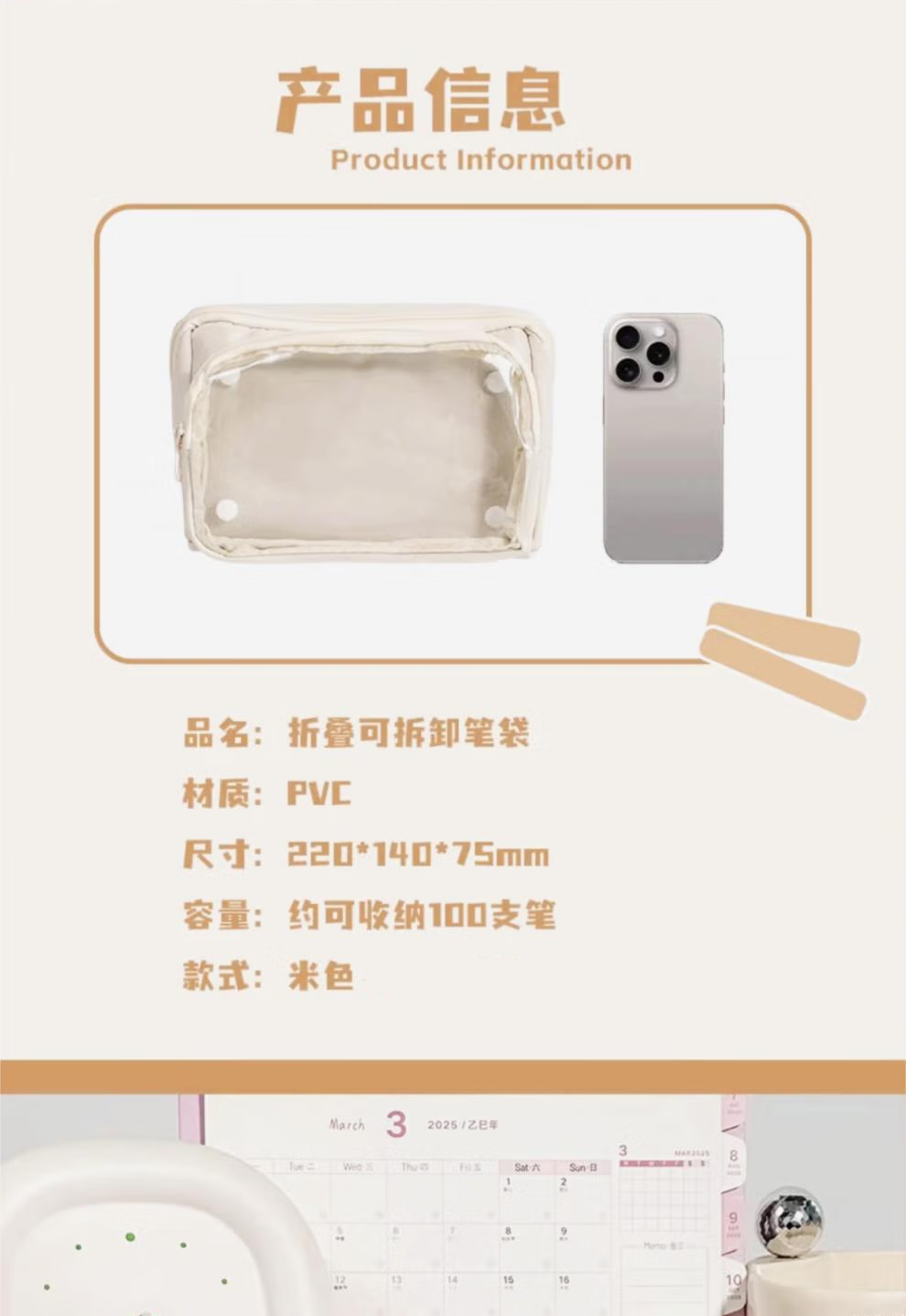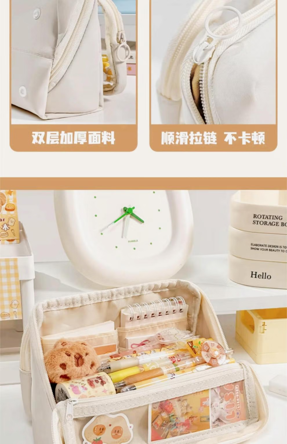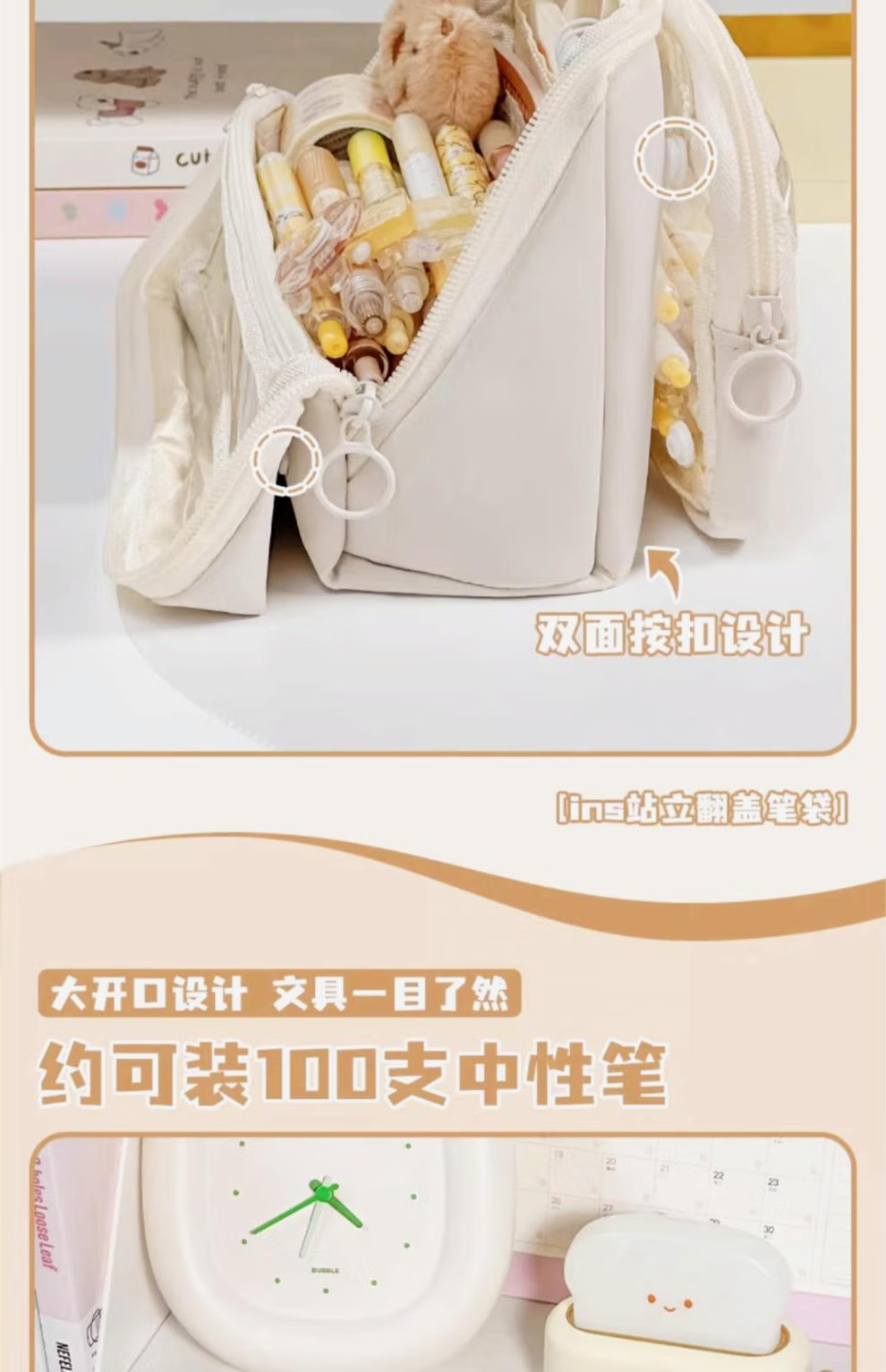 钧采 大容量高颜值文具袋1个 可拆卸笔袋可收纳100支笔 220*140*75mm 米白色(单位:个)