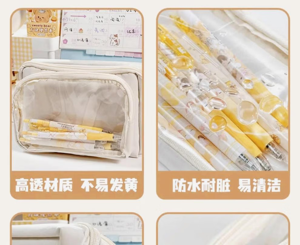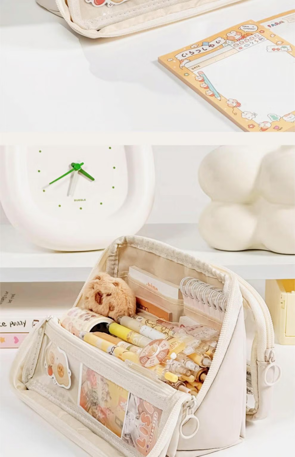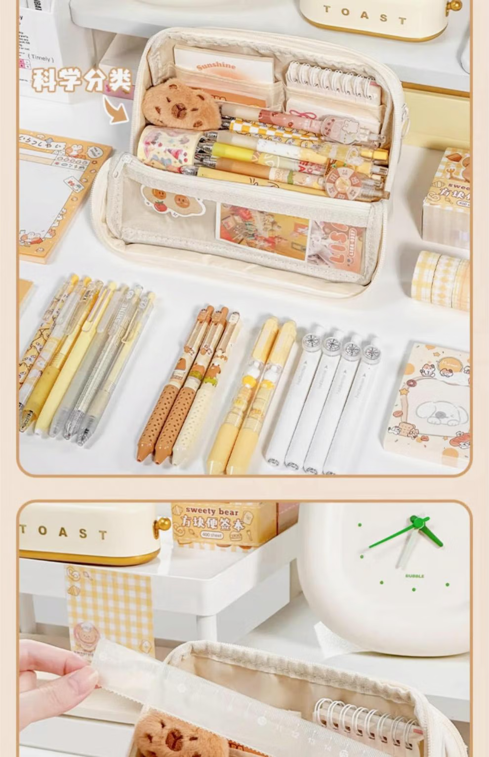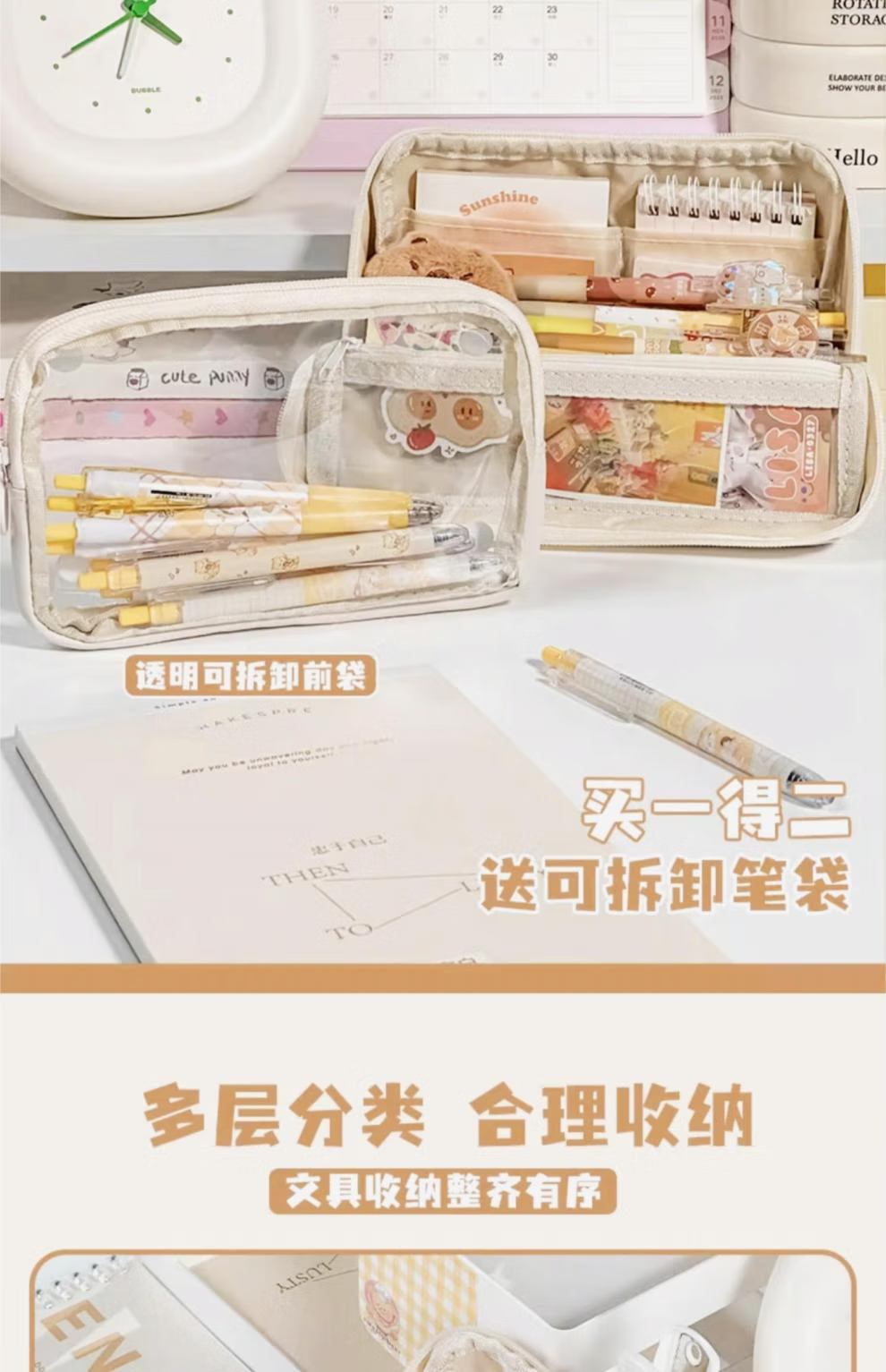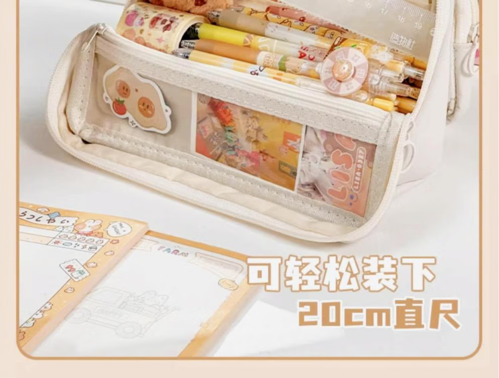 钧采 大容量高颜值文具袋1个 可拆卸笔袋可收纳100支笔 220*140*75mm 米白色(单位:个)