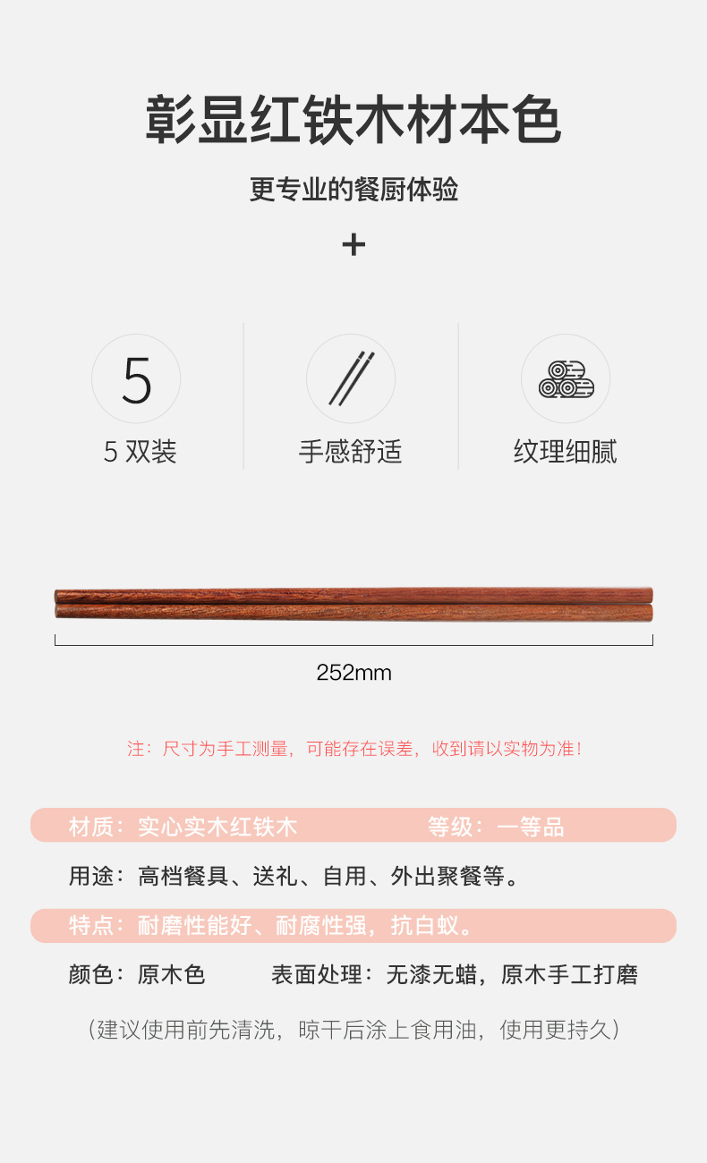 原森太 红铁木筷子 02.YSTKZ039 10双装*1套(共10双) 褐色(单位:组)