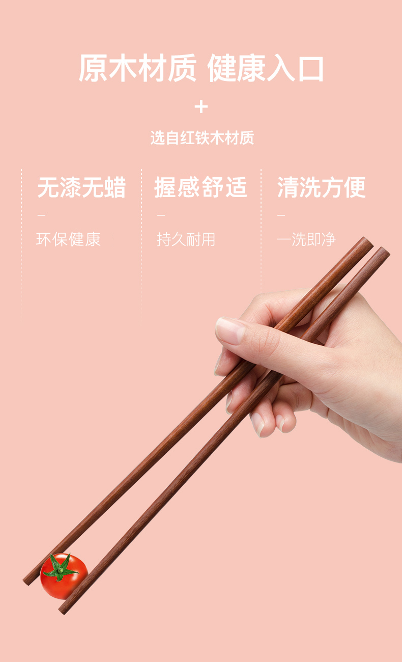 原森太 红铁木筷子 02.YSTKZ039 10双装*4套(共40双) 枫叶色(单位:组)