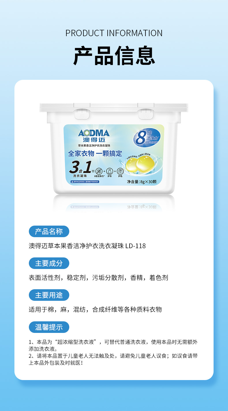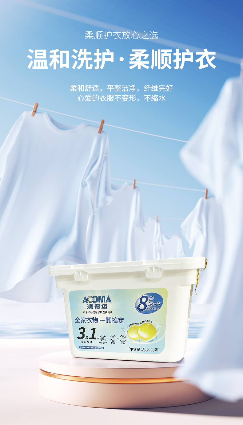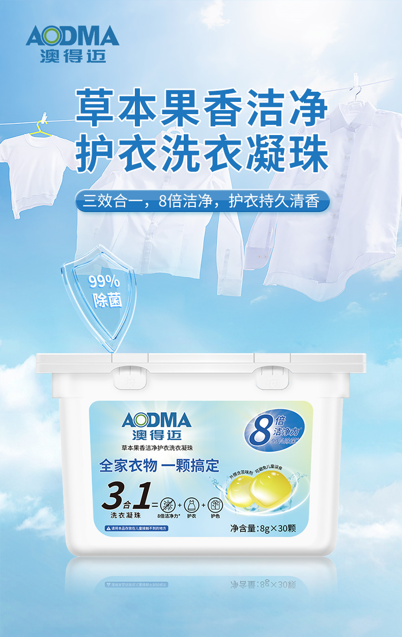 澳得迈(AODMA) 洗衣凝珠 草本果香洁净护衣 8gx30颗/盒*2盒 白色(单位:组)