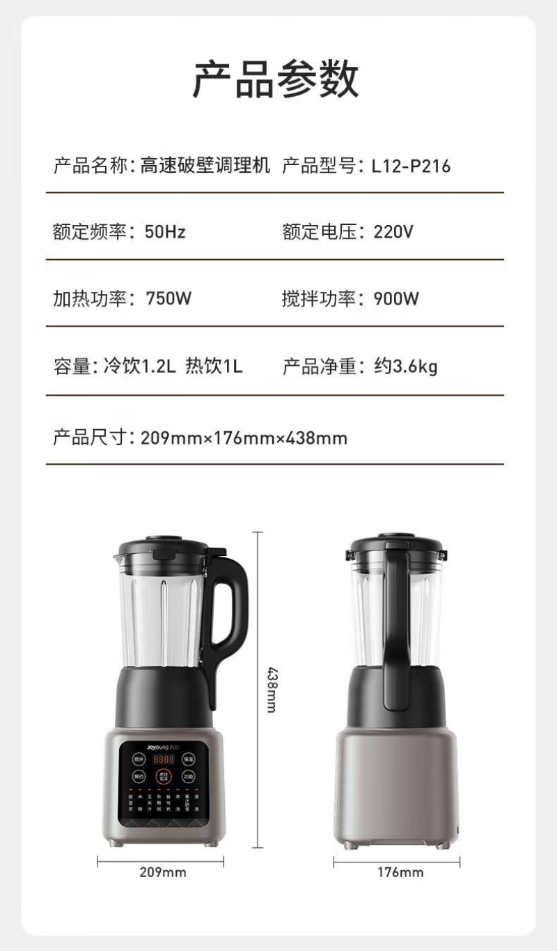 九阳(Joyoung) 破壁机 L12-P216 1.2L 榛果金深(单位:台)
