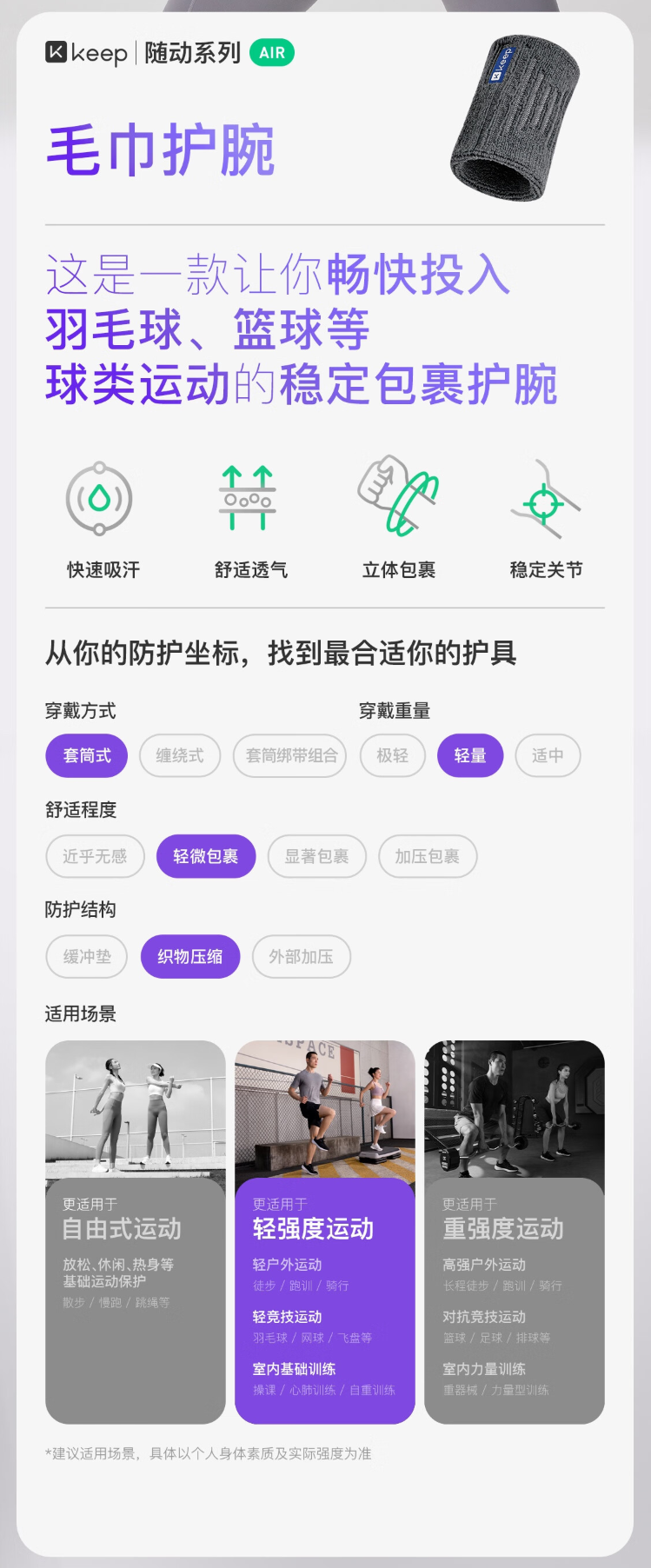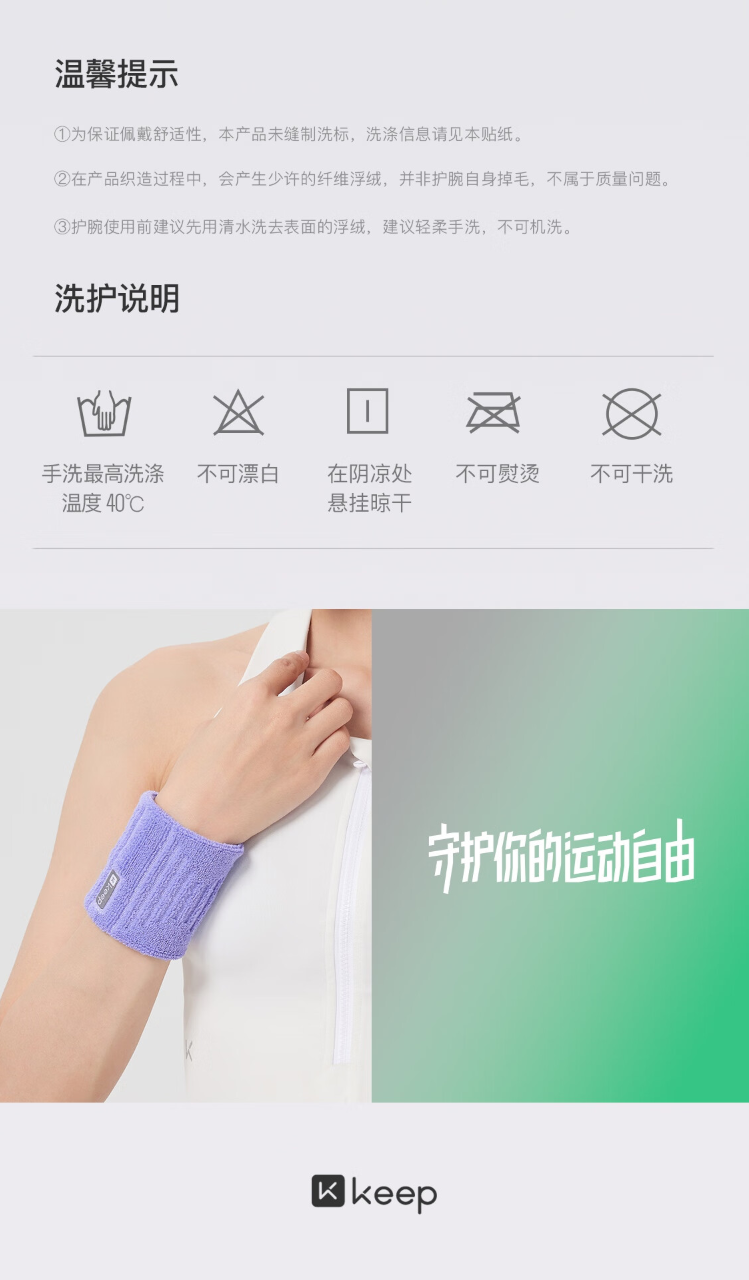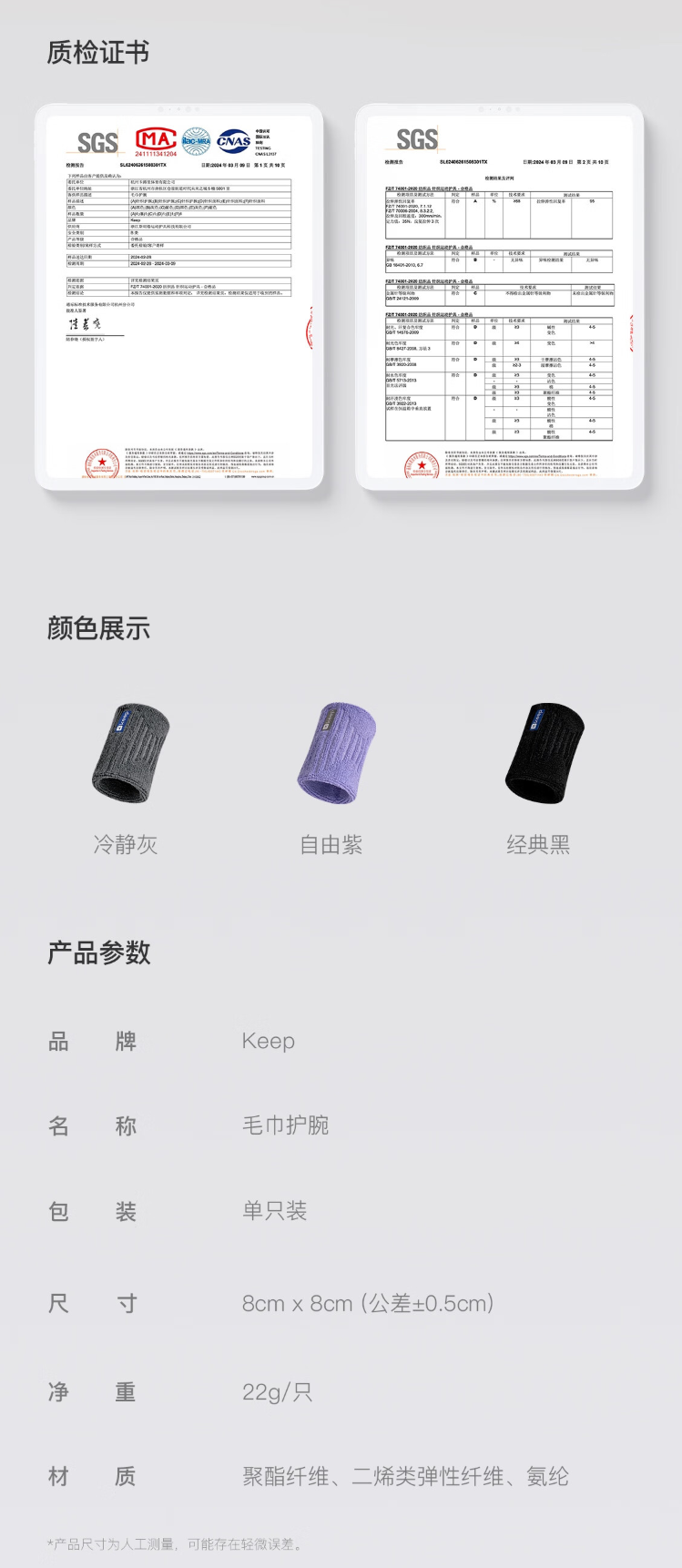 keep 运动护腕 毛巾护腕 单只8*8cm 混色(单位:只)