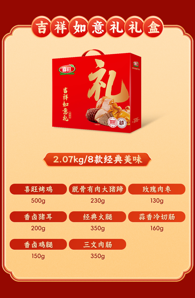 喜旺(Siwin Foods) 熟食腊味烤鸡组合 吉祥如意礼 2.07kg(8种)礼盒装 混色(单位:箱)