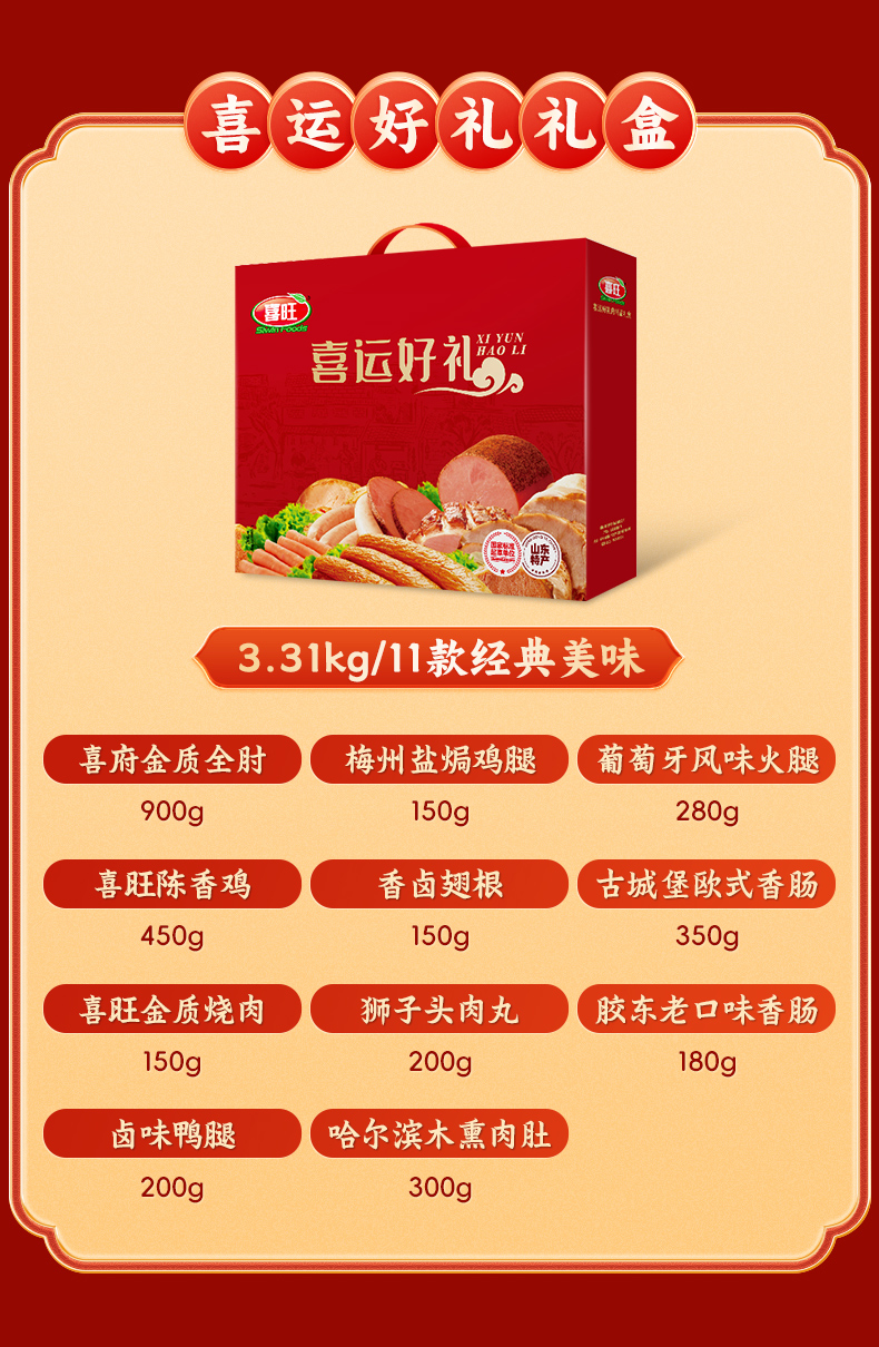 喜旺(Siwin Foods) 熟食卤味组合大礼包 喜运好礼肉食 3310g礼盒装 混色(单位:盒)