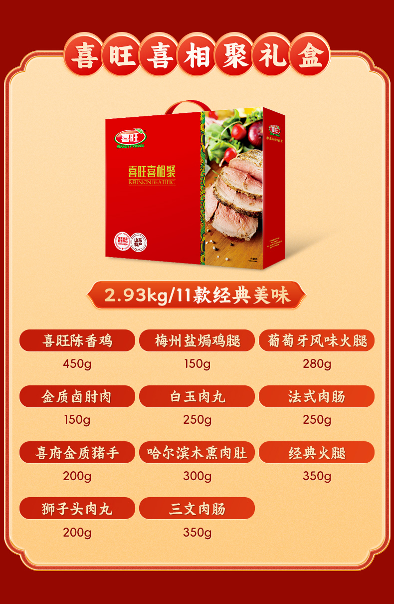 喜旺(Siwin Foods) 熟食卤味肉食大礼包 喜相聚肉食 2930g(11款)礼盒装 混色(单位:盒)