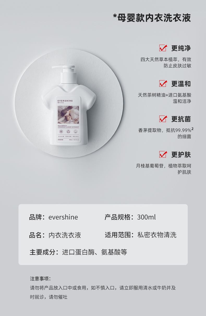 evershine 内衣洗衣液内裤清洗液 木屿深林 300ml 柠绿色(单位:瓶)
