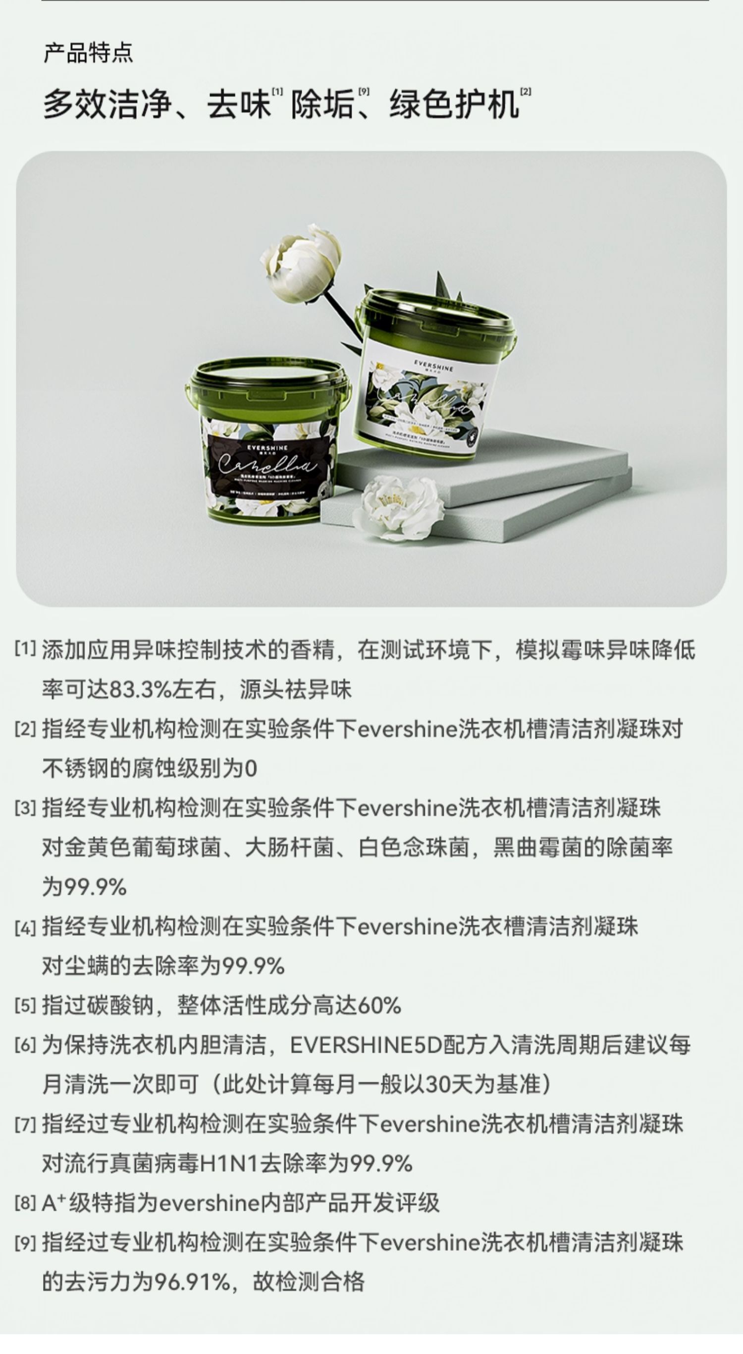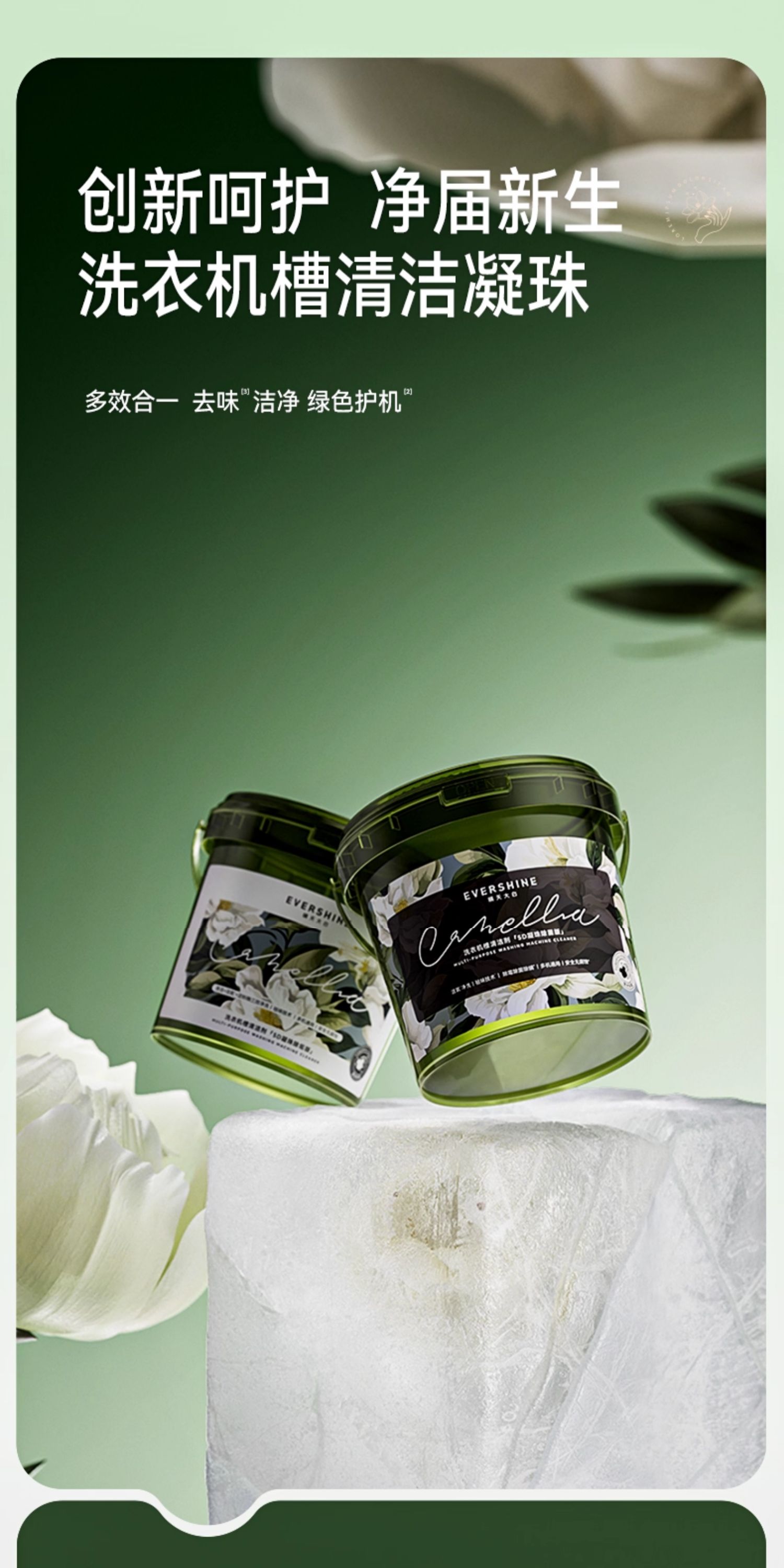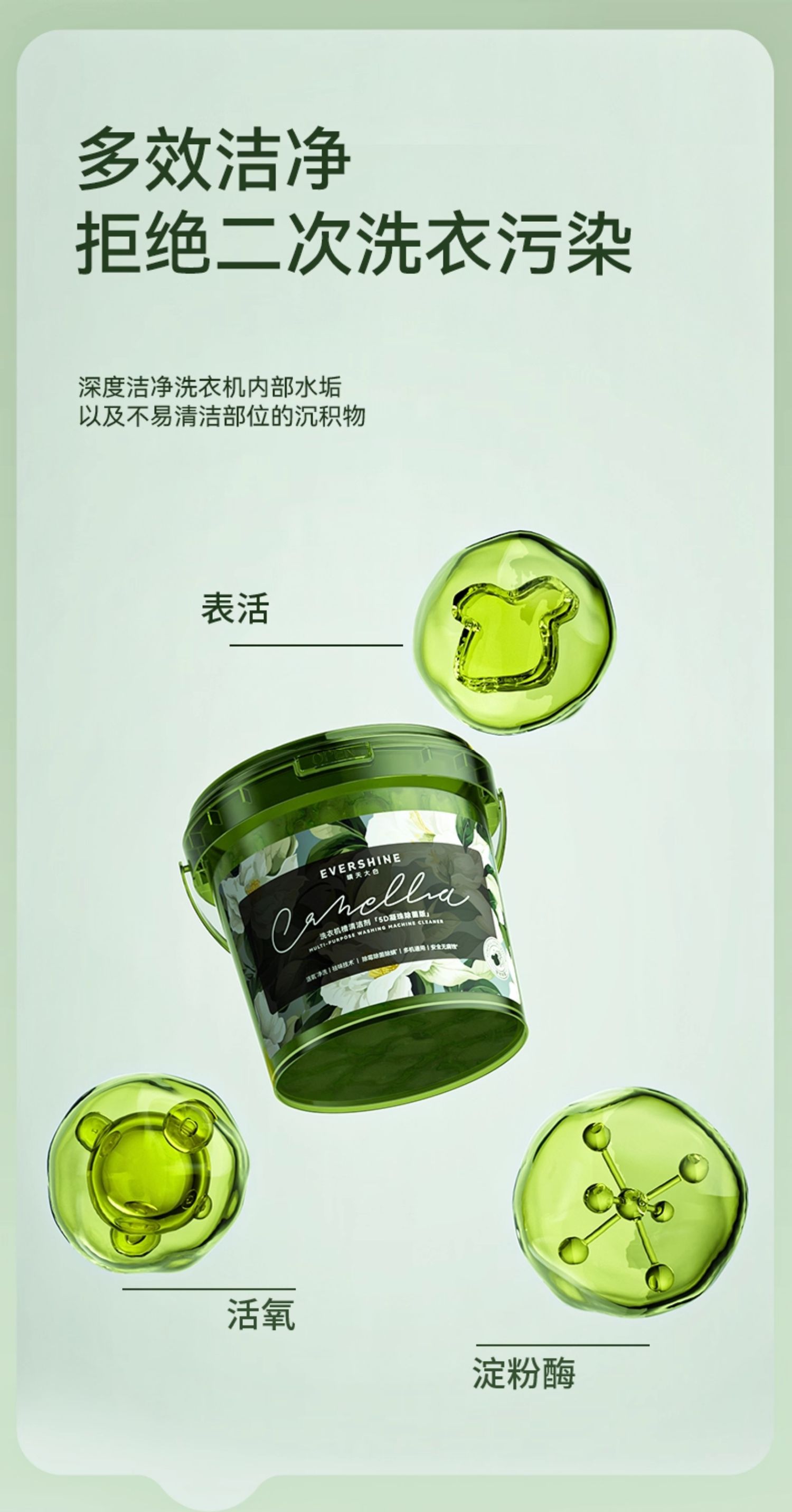 evershine 洗衣机清洁剂强力除垢杀菌 山茶花-除菌版 30g*12颗 曜石黑(单位:瓶)